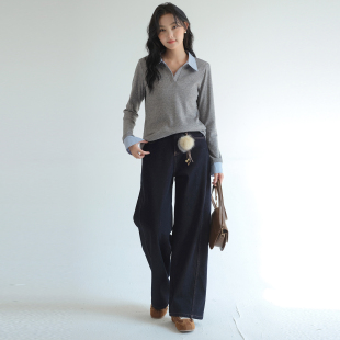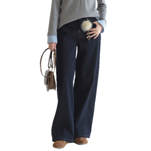 新款 女装 蓝若水大码 高腰垂感复古牛仔长裤 显瘦加绒直筒牛仔裤