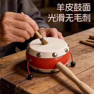 中国风传统拨浪鼓双面羊皮鼓新生儿玩具0 1岁宝宝早教益智手摇铃