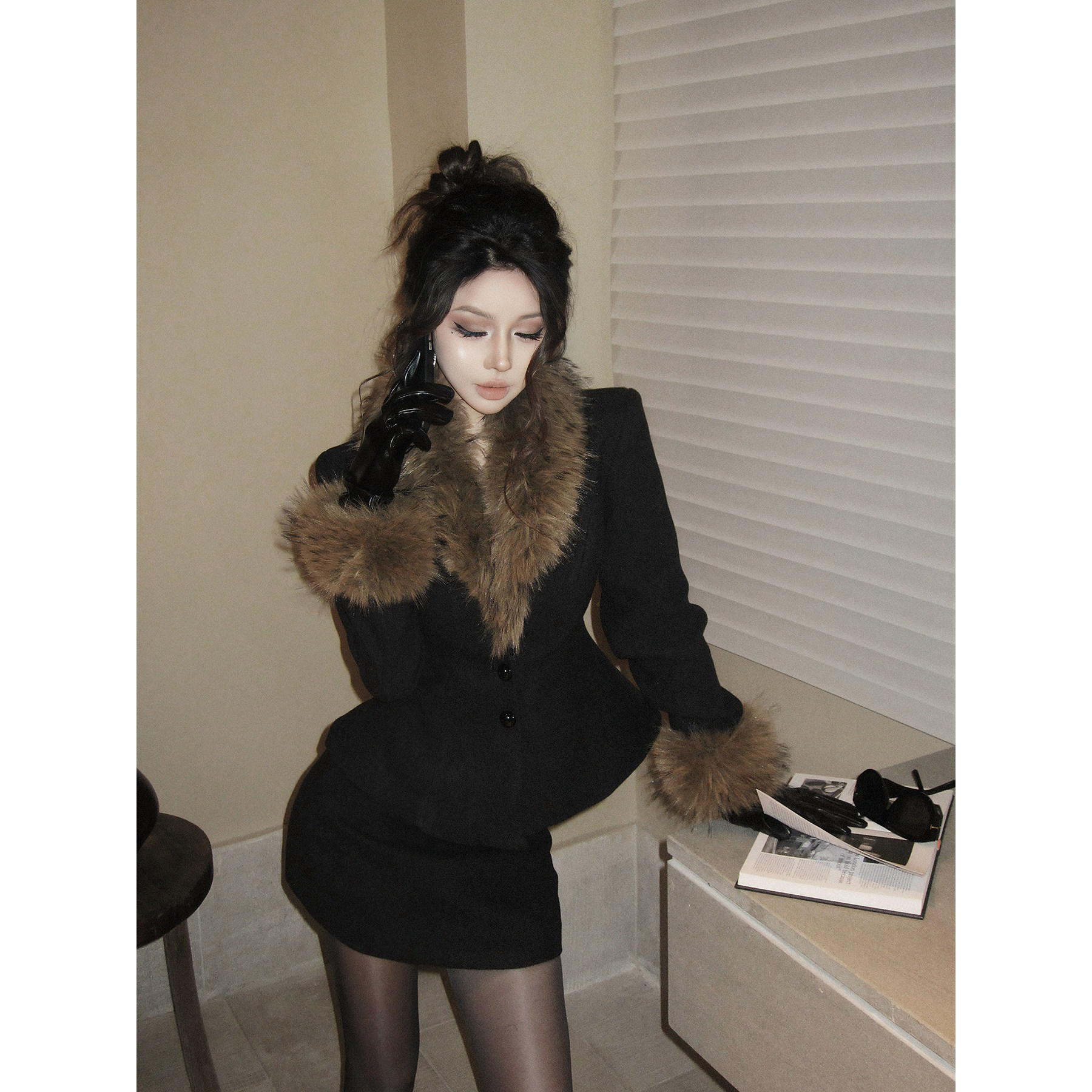 毛呢毛领外套半身裙套装 福尔尼斯悦 御姐风穿搭一整套2025冬季