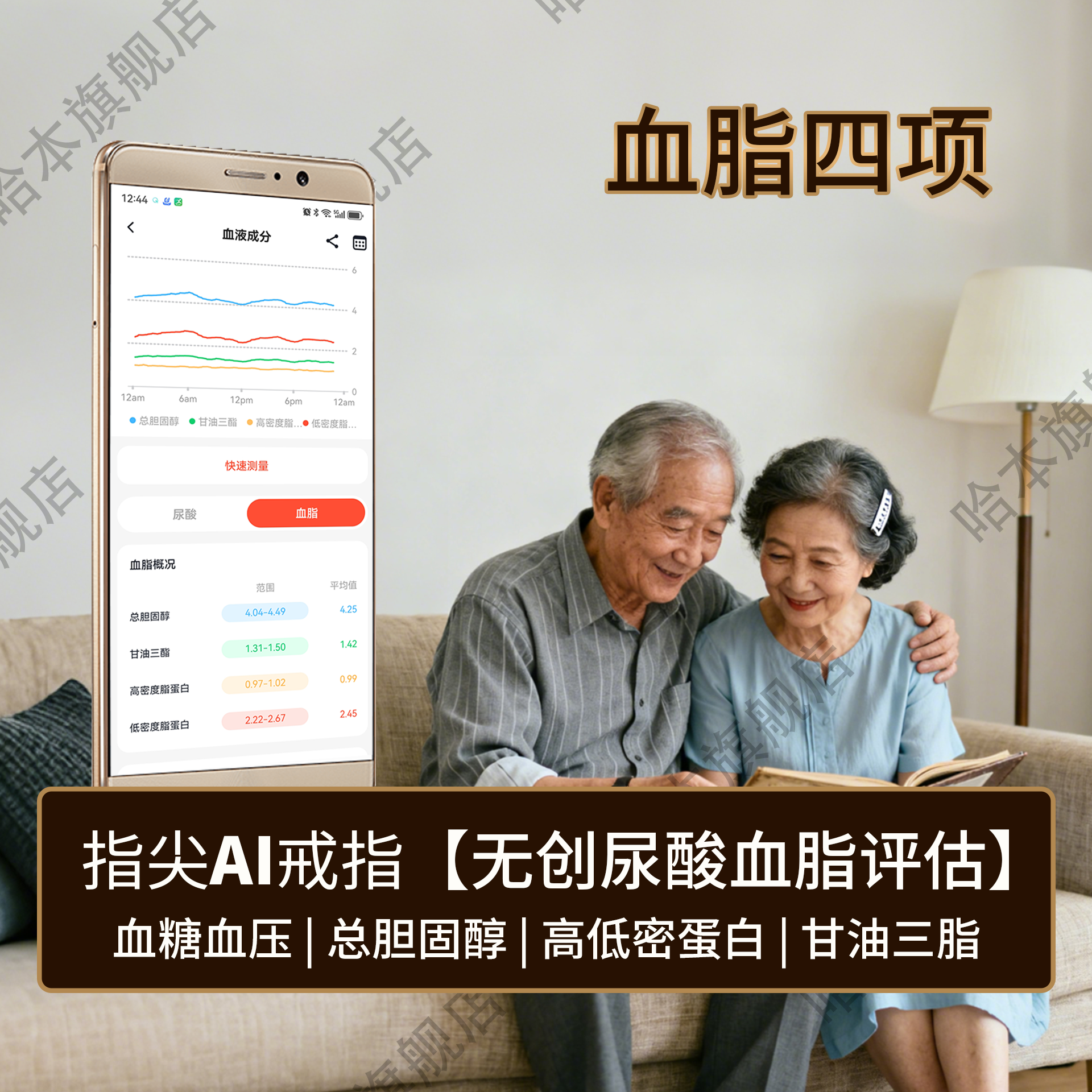 哈本云戒测血糖血压血氧智能AI戒指多功能运动健康黑科技指环睡眠监测穿戴心率监测无创检测仪 测尿酸血脂