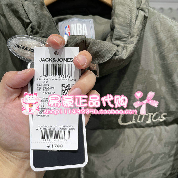 杰克琼斯NBA凯尔特人立领满印羽绒服225412013 6905571293896 E06
