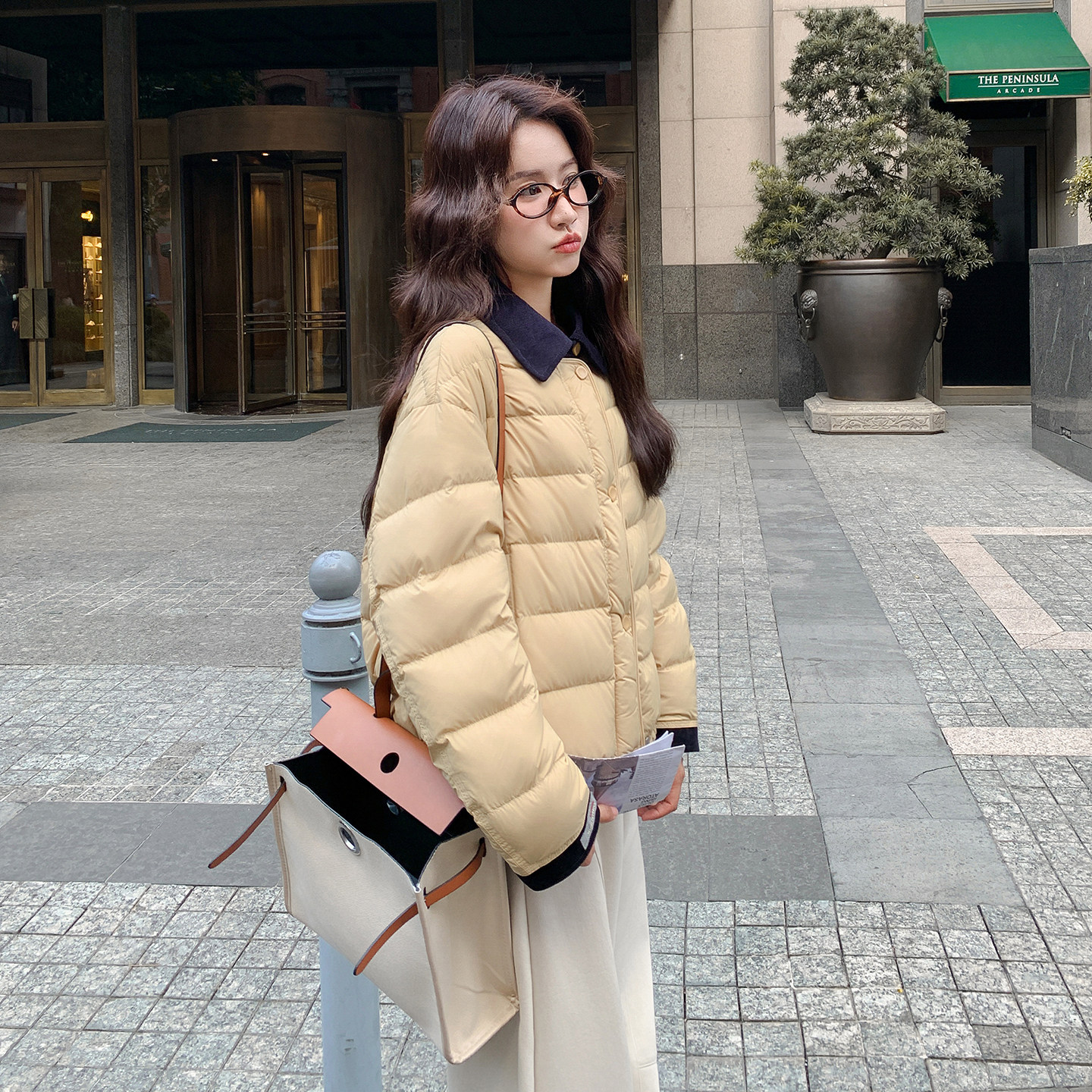连帽时尚 小个子短款 保暖外套 秋冬季 90白鸭绒轻薄排骨羽绒服女短款