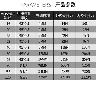 16D20D25D32D40D50D63D 二爪三爪四爪气动手指夹爪气缸MHS2