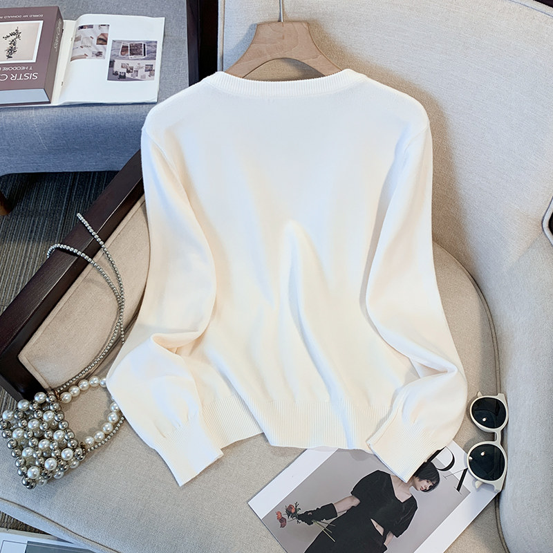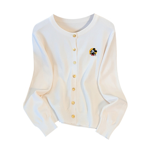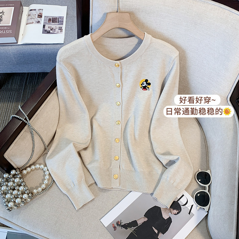 女时尚 学院风秋冬季 针织开衫 长袖 纯色米奇刺绣金属扣毛衣外套 新款