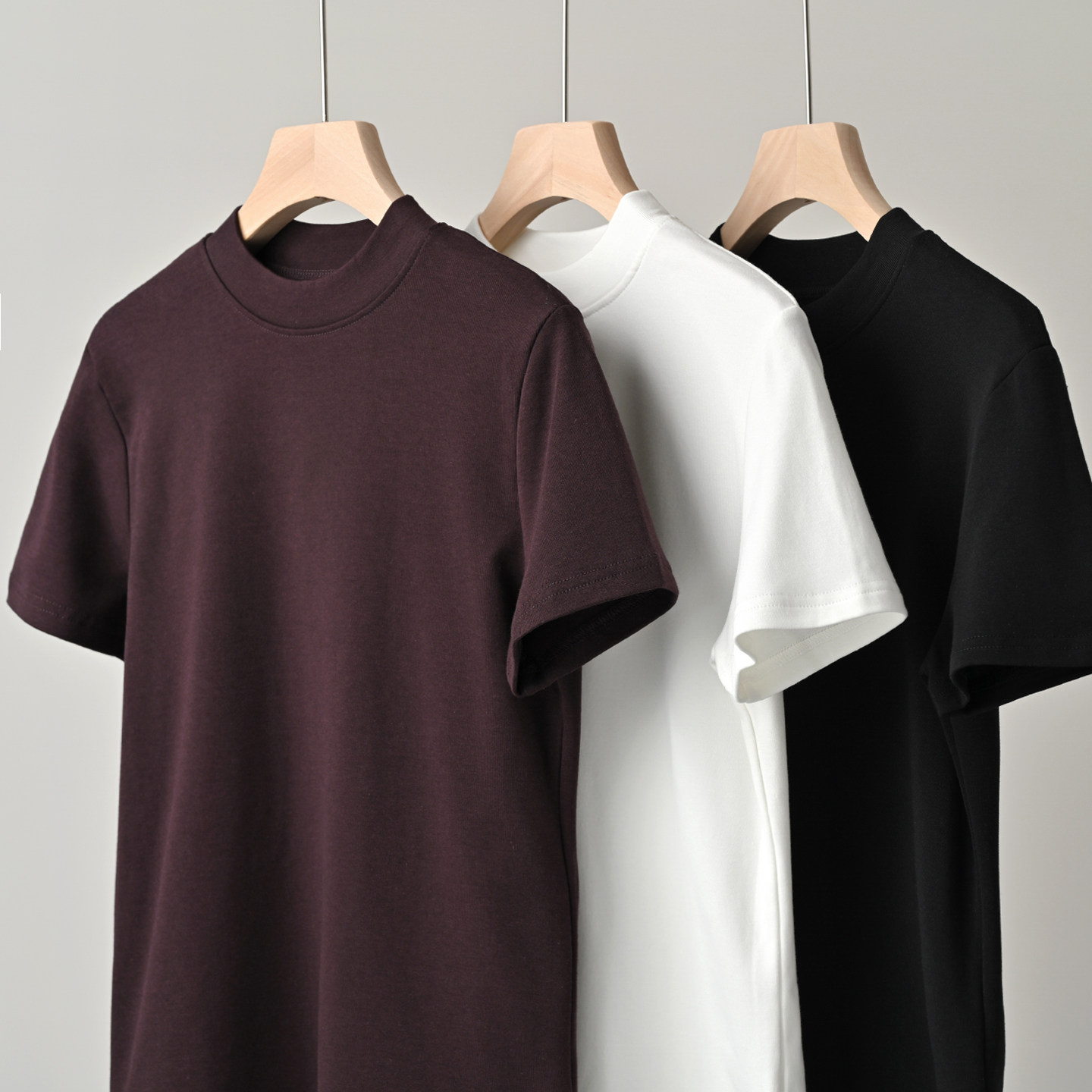 女装 内搭半高领打底衫 女士优可丝磨毛T恤 260g秋冬薄绒小短袖
