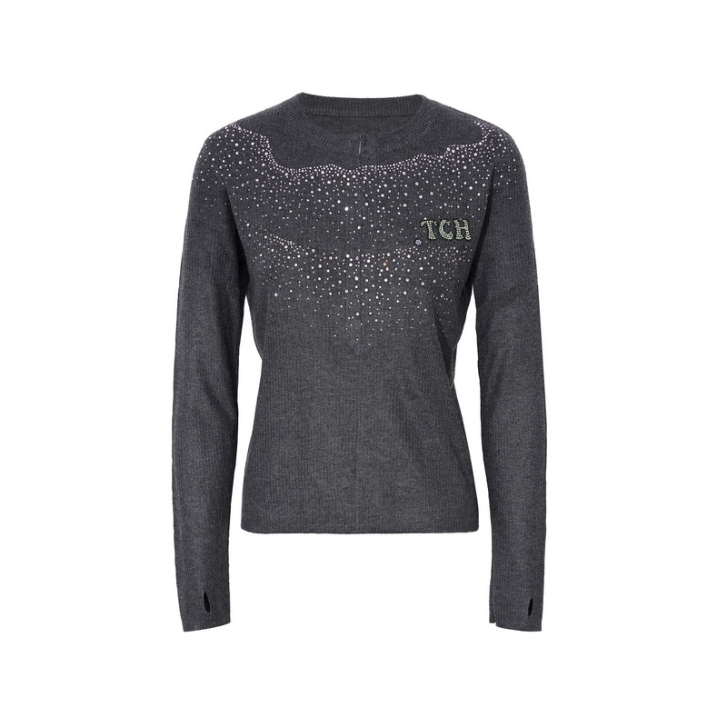 通勤气质百搭针织衫 烫钻时尚 上衣女T75D09E1112 新款 TCH私服25冬季
