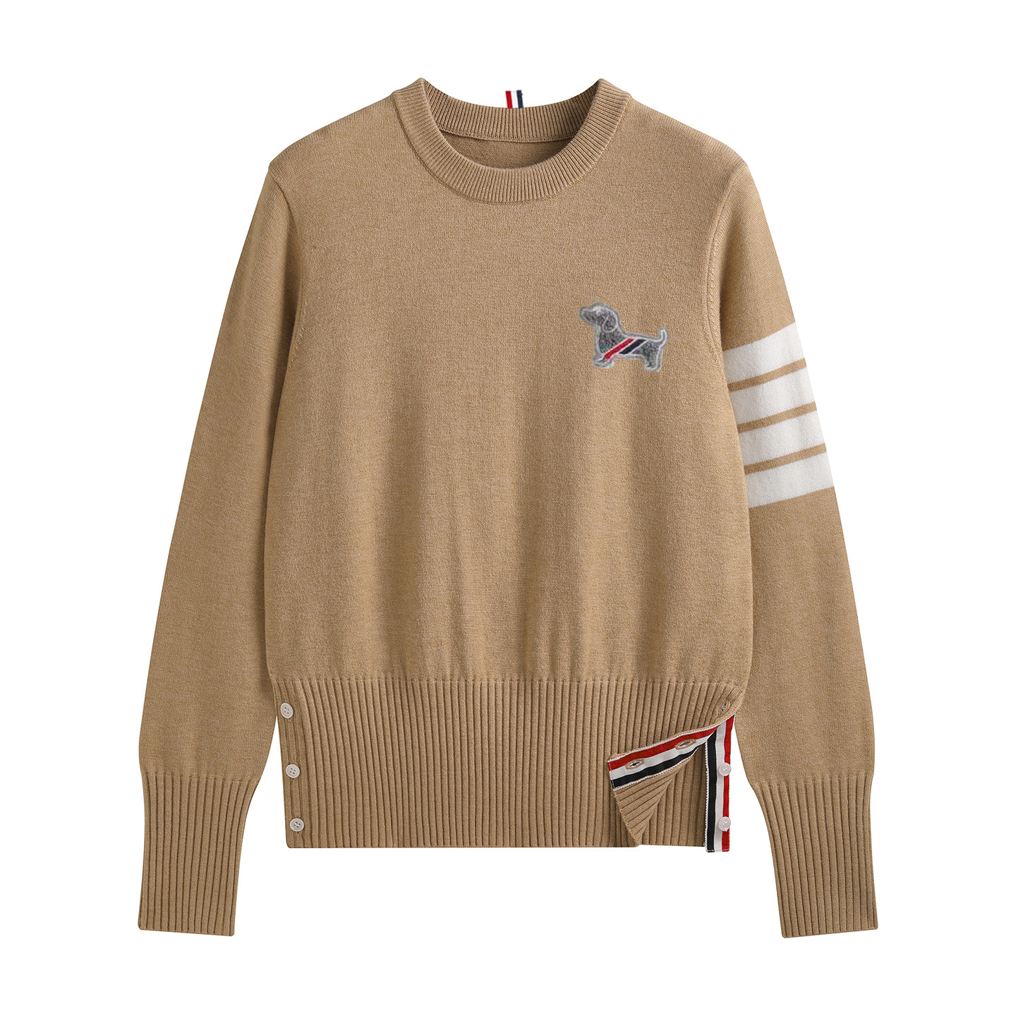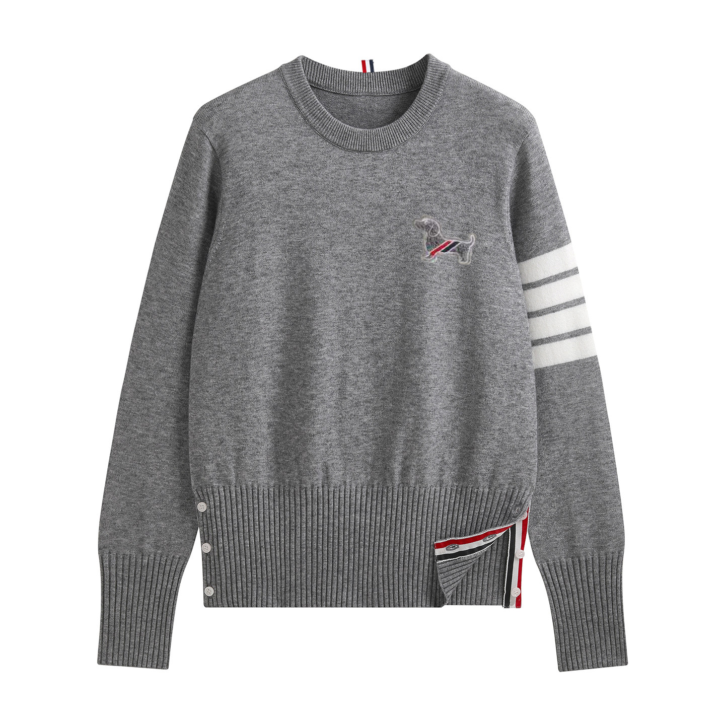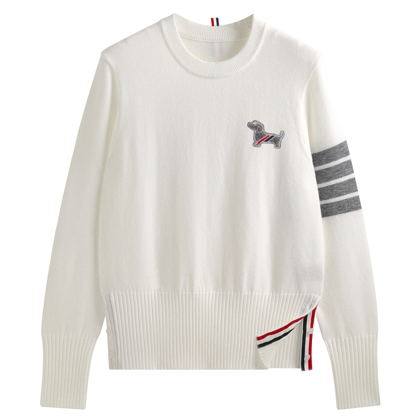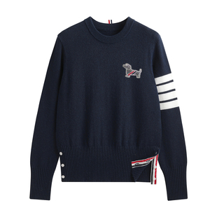 YIMISUN设计感学院风小狗刺绣圆领四条杠针织套头女宽松打底上衣