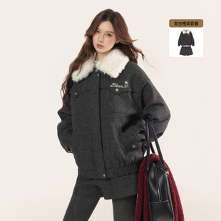 两件套 一整套穿搭高级感加绒休闲裤 灰色毛领连帽卫衣套装 女秋冬季