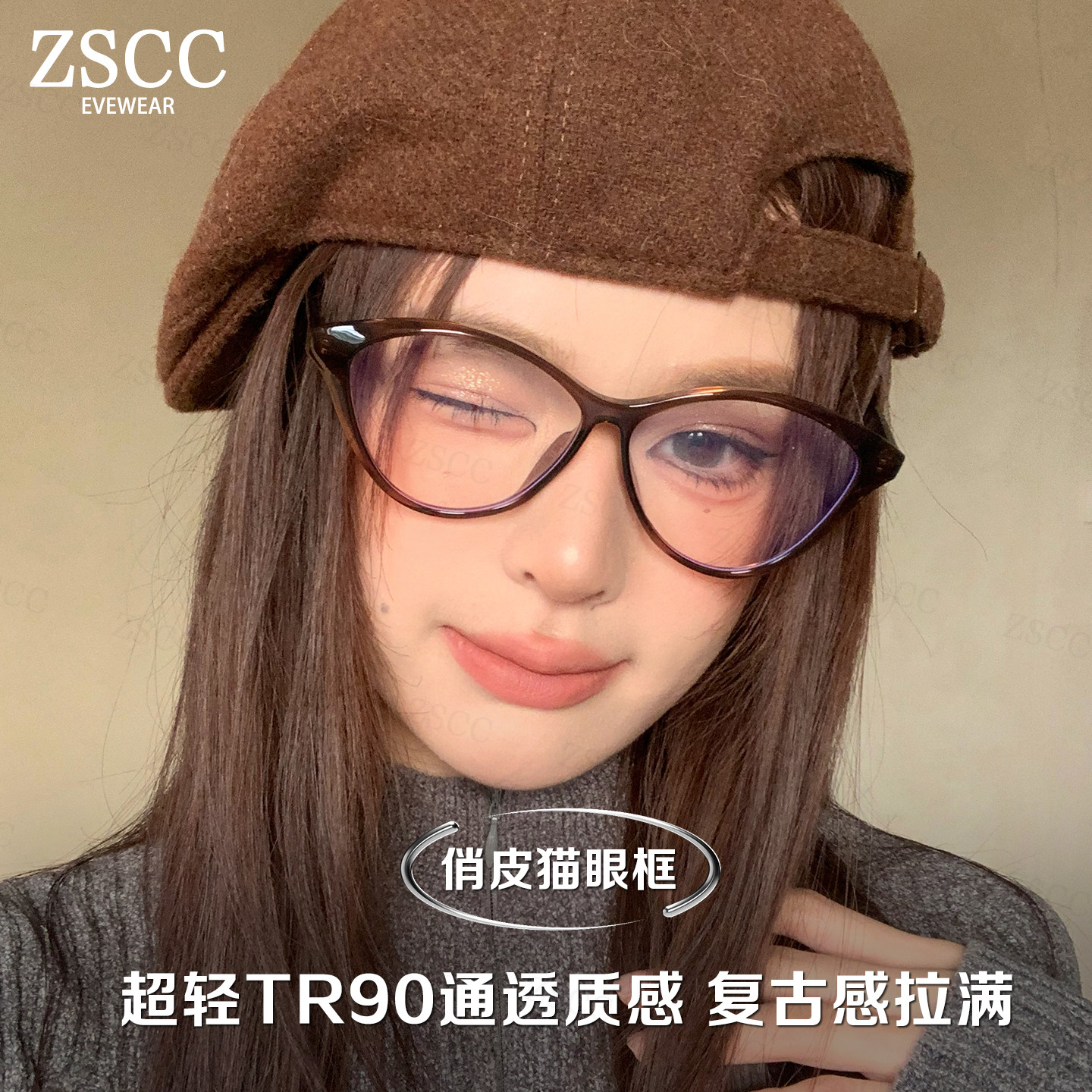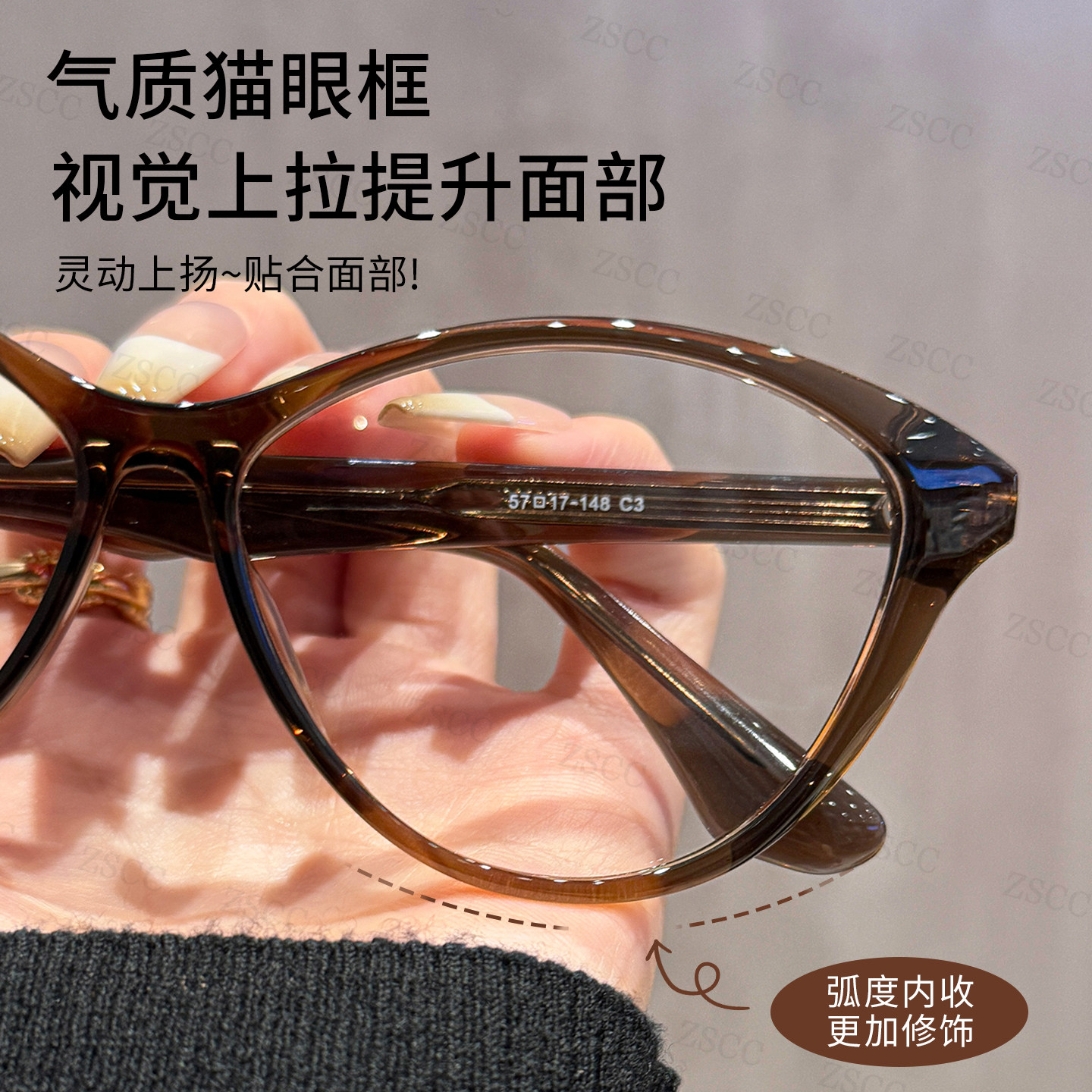 乐申专业网上配冷茶色近视眼镜框女款 蔡司防蓝光可配度数超轻纯钛