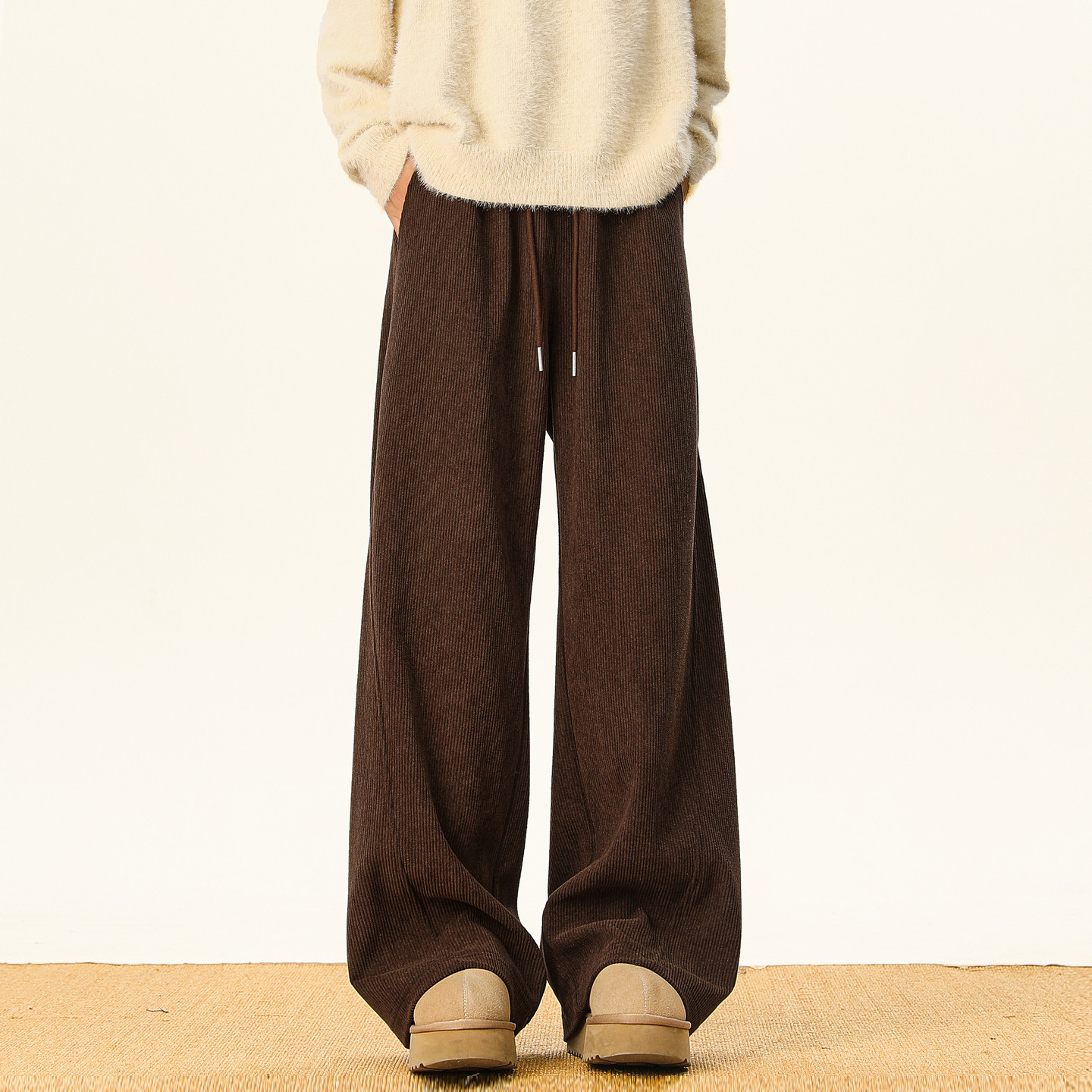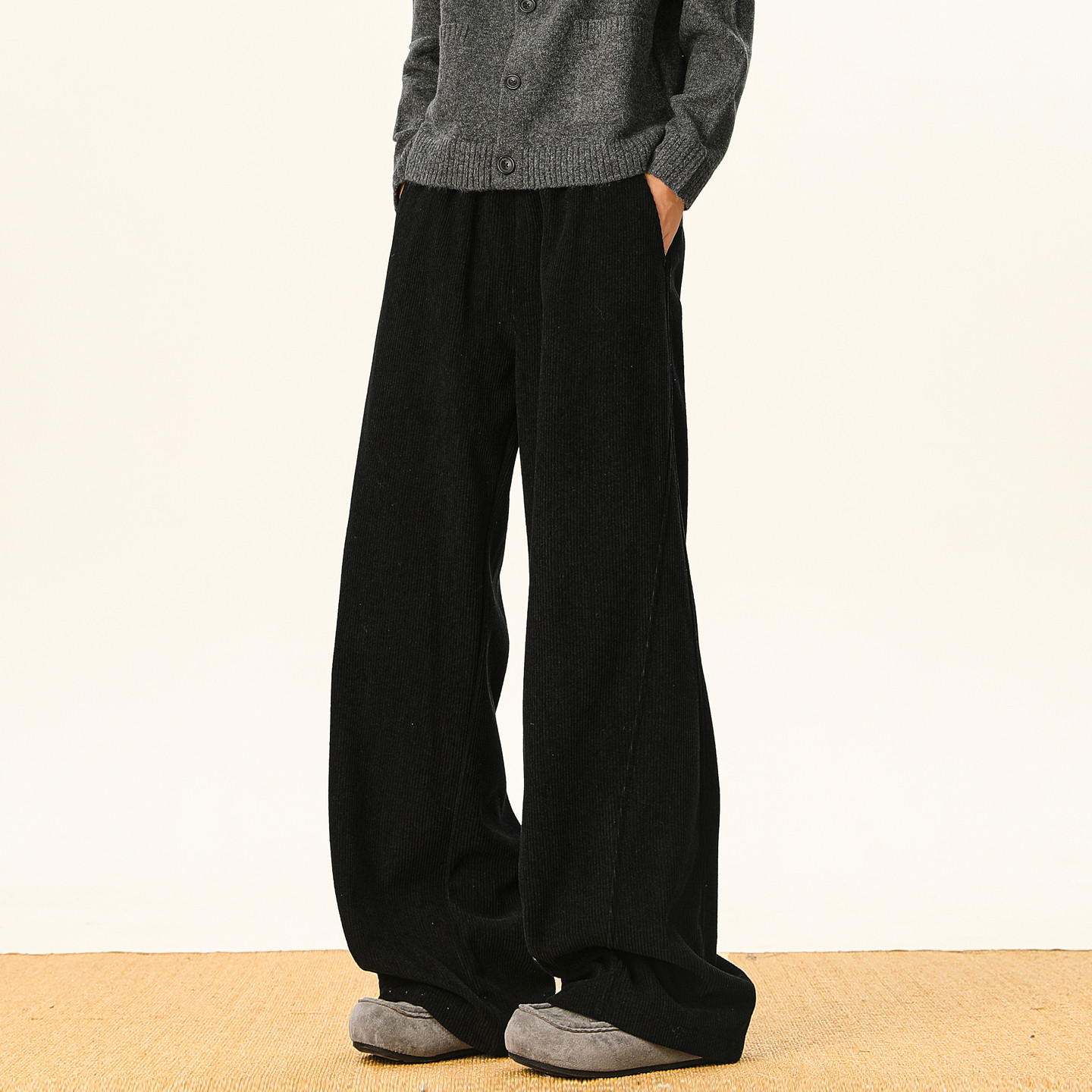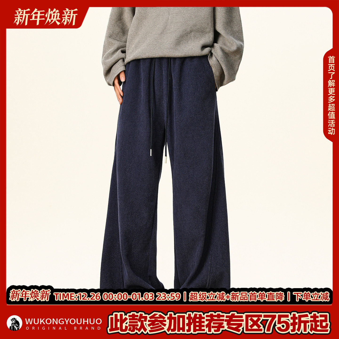 男潮牌加绒加厚百搭阔腿裤 悟空有货潮牌复古冬季 灯芯绒直筒休闲裤