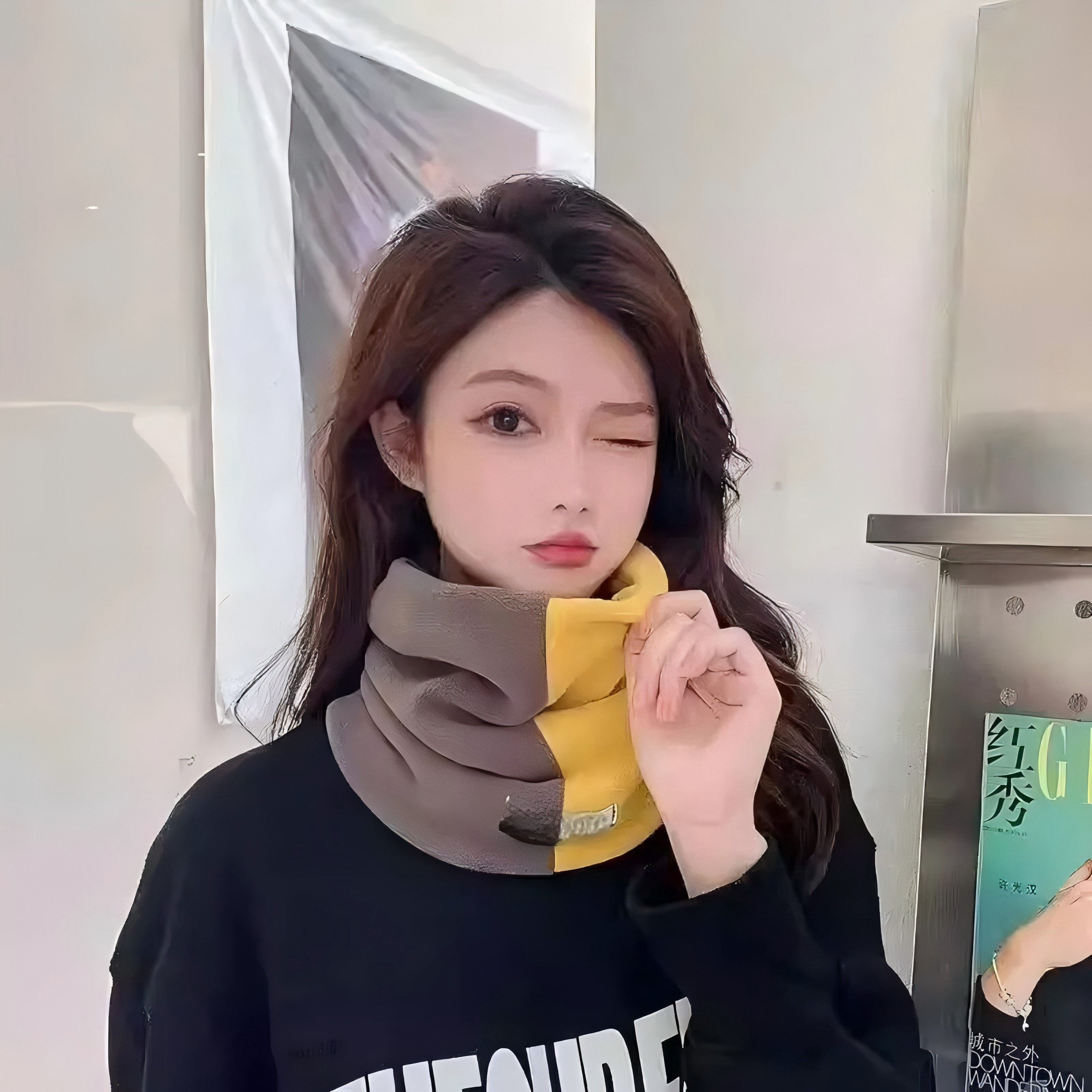 显白姜黄色围巾韩系女冬季 护颈针织粉色围脖 纯色复古百搭情侣时尚