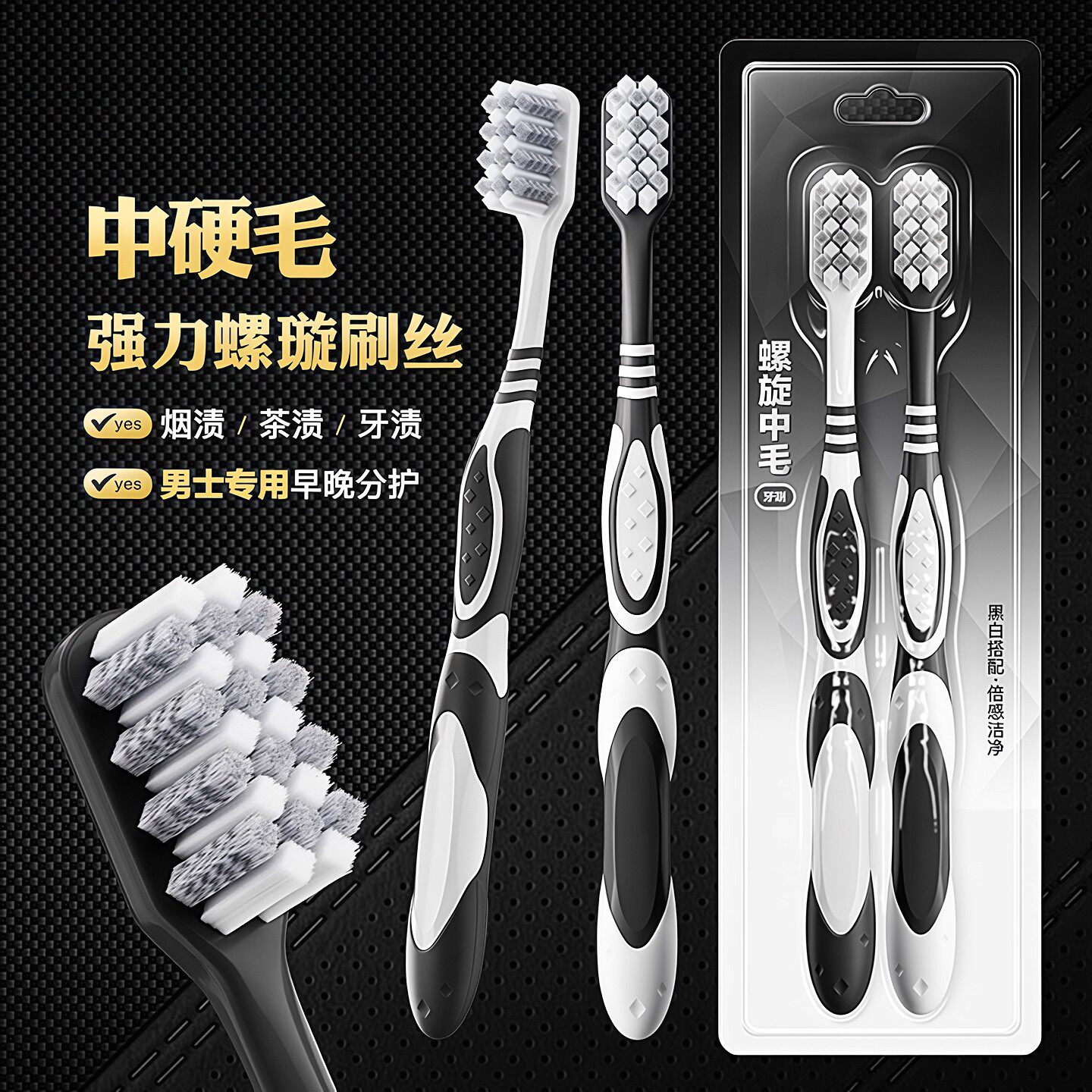 硬毛牙刷成人正品 超硬耐用高端中硬毛家用去烟渍牙齿污垢清洁神器