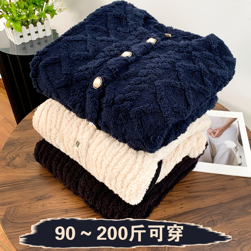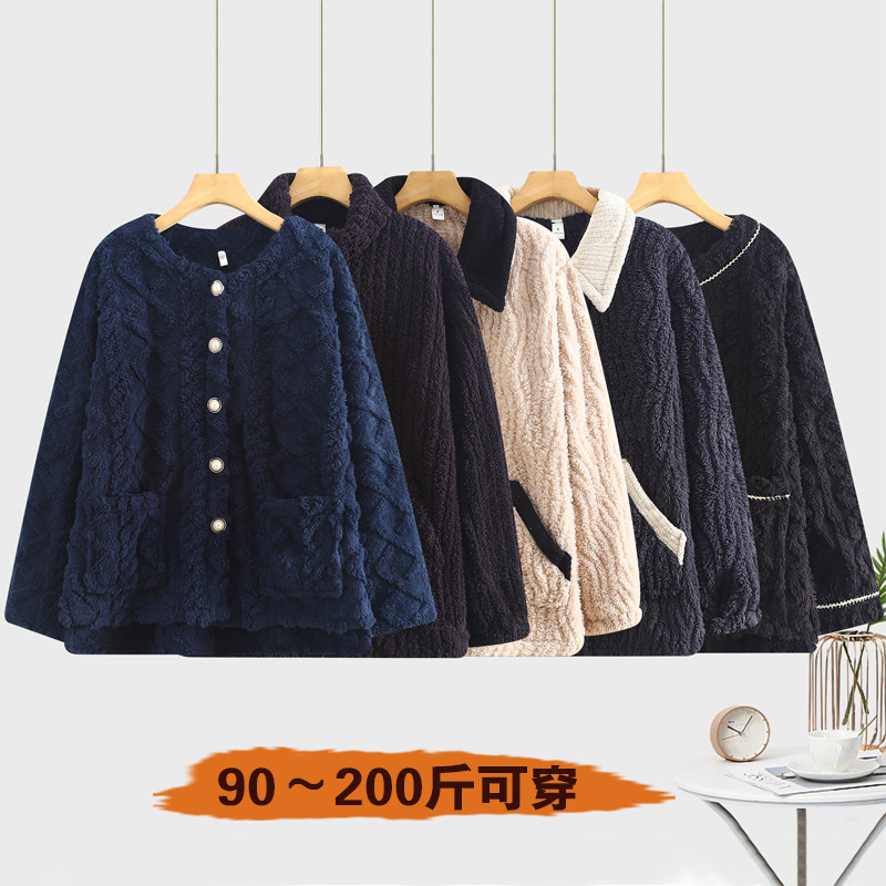 家居服睡衣上衣春秋保暖 长袖 瑕疵特价 外贸女超柔宝宝绒薄绒开衫