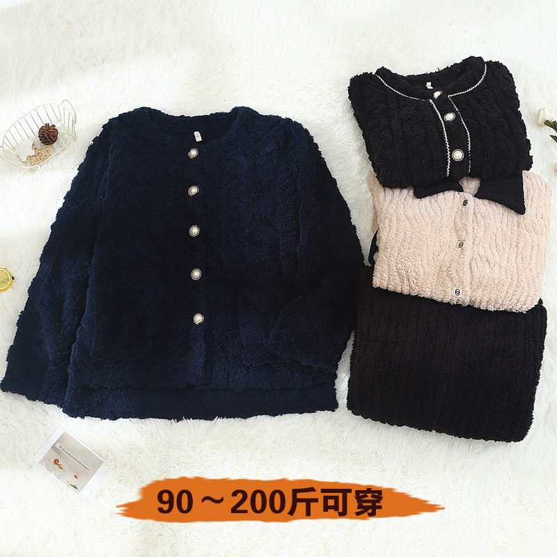睡衣 长袖 冬季 单件上衣女加厚法兰绒保暖珊瑚绒加绒简约纯色开衫