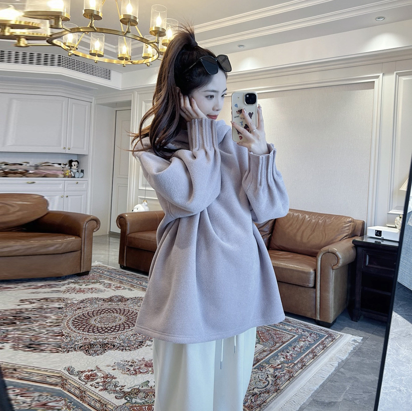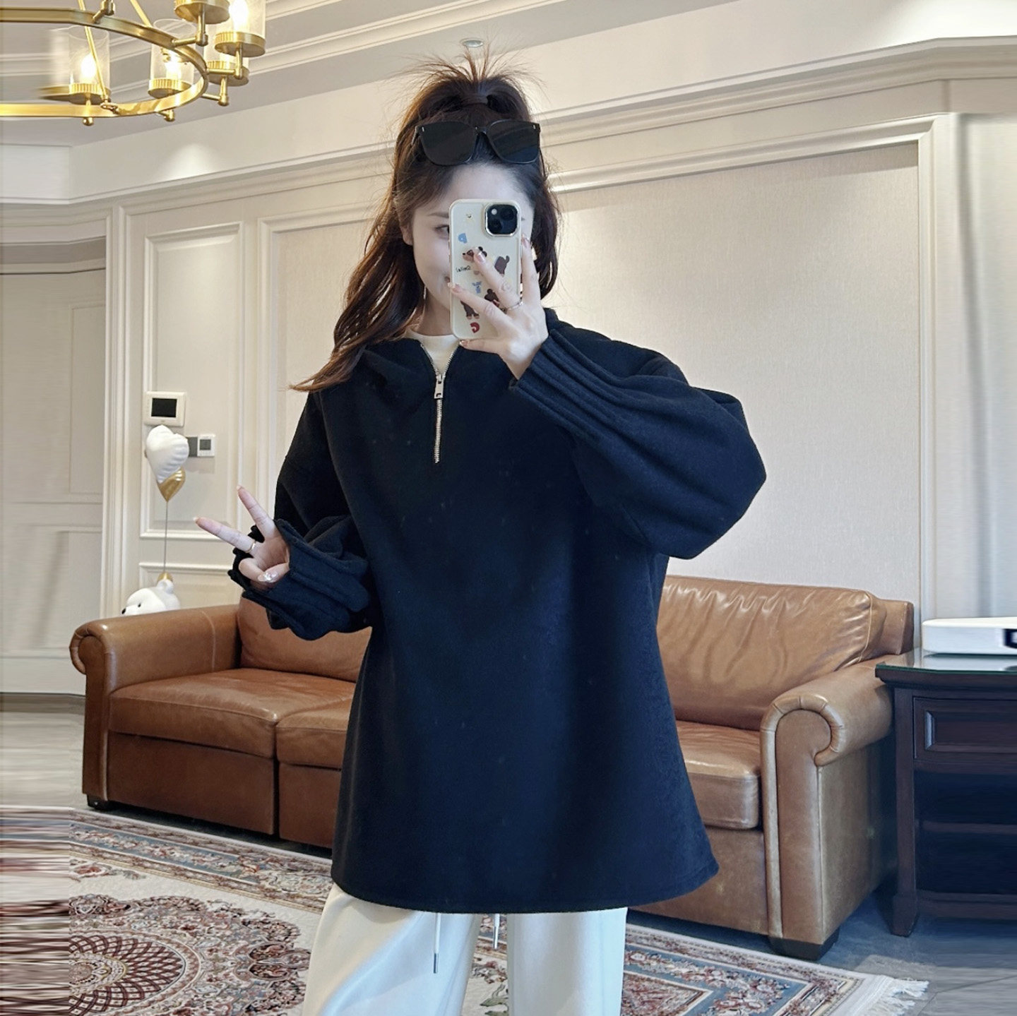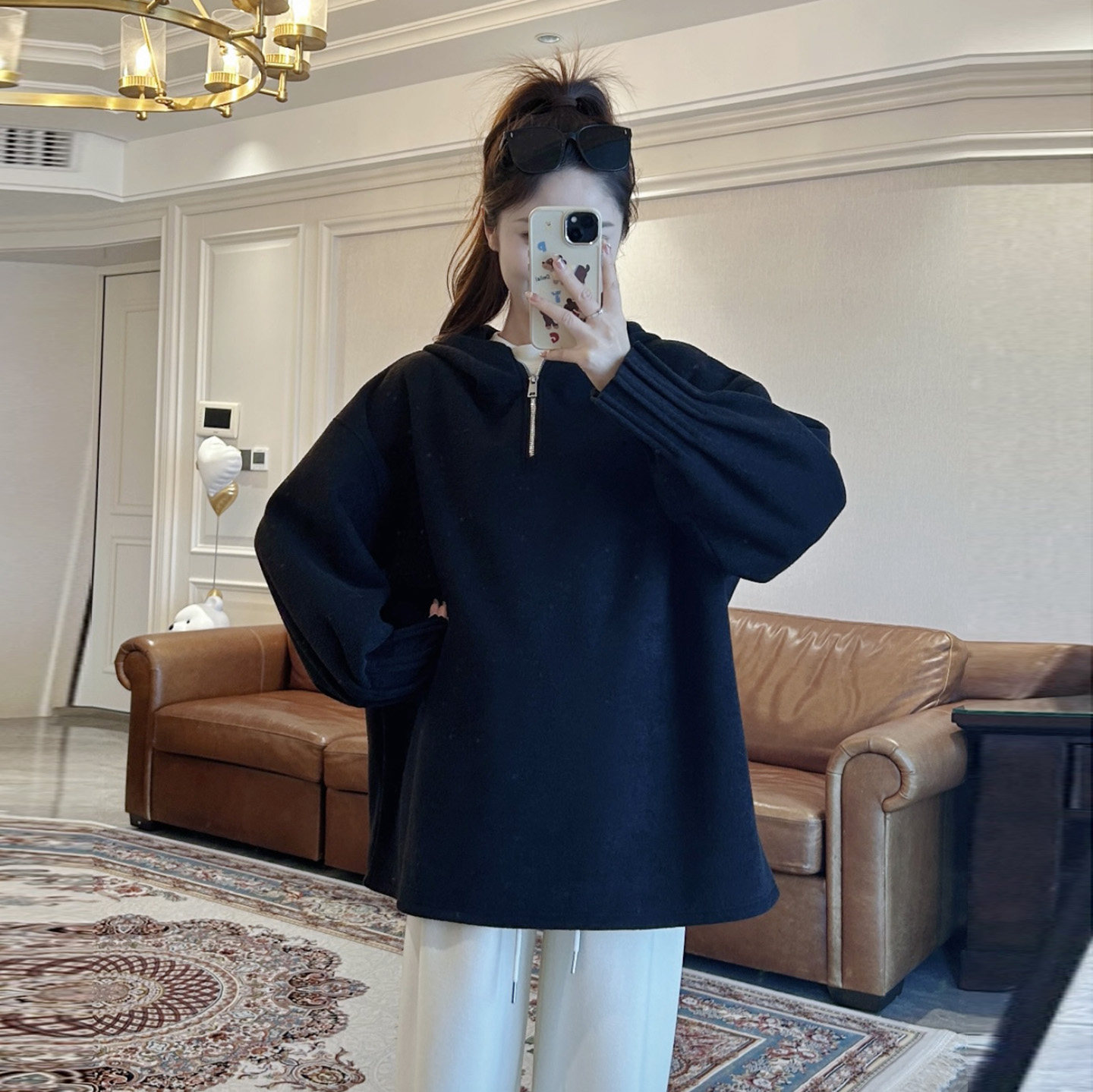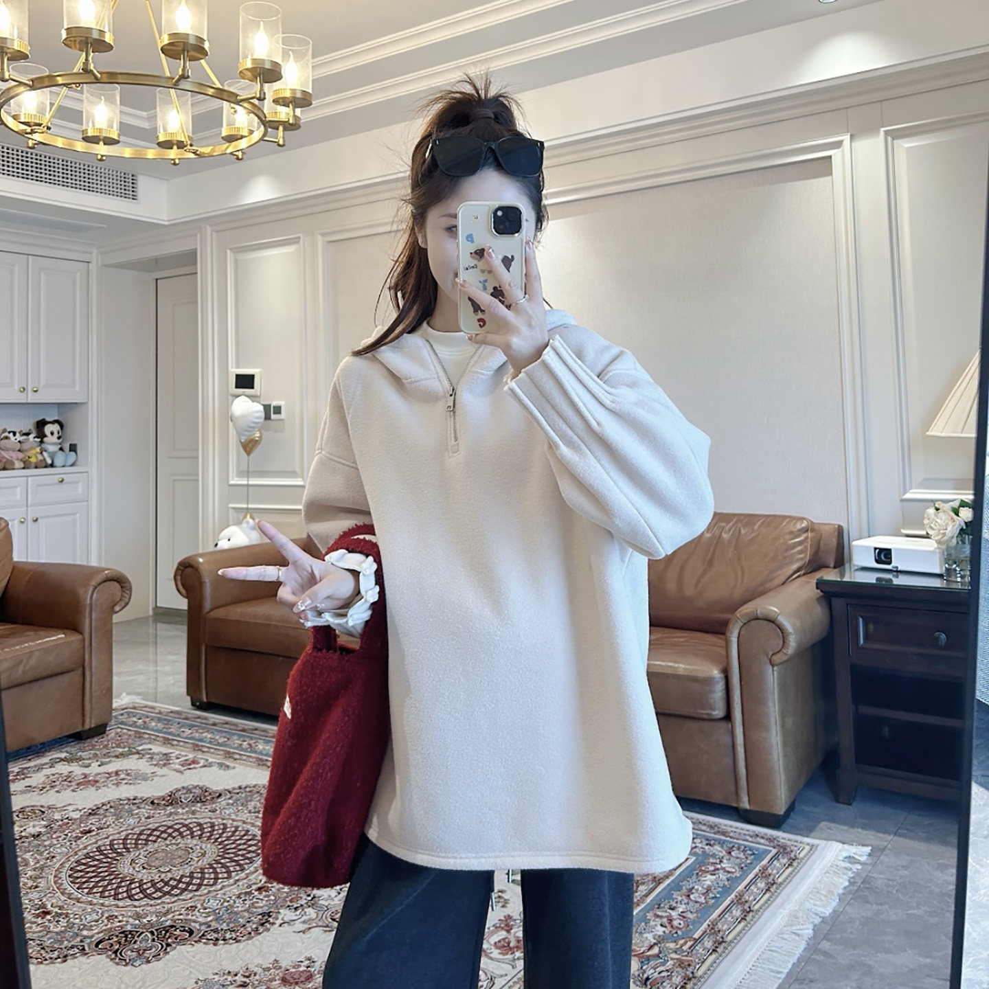 孕妇秋冬装 女 双面绒加厚卫衣连帽半拉链泰迪绒宽松显瘦上衣打底衫