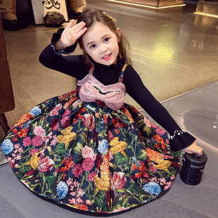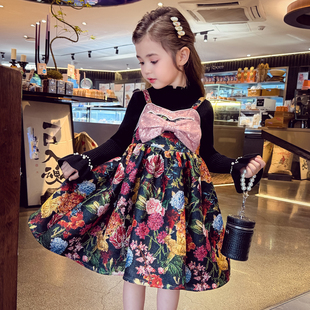 米米哈罗女童加绒连衣裙冬2025新款 儿童碎花吊带裙女孩公主裙 法式
