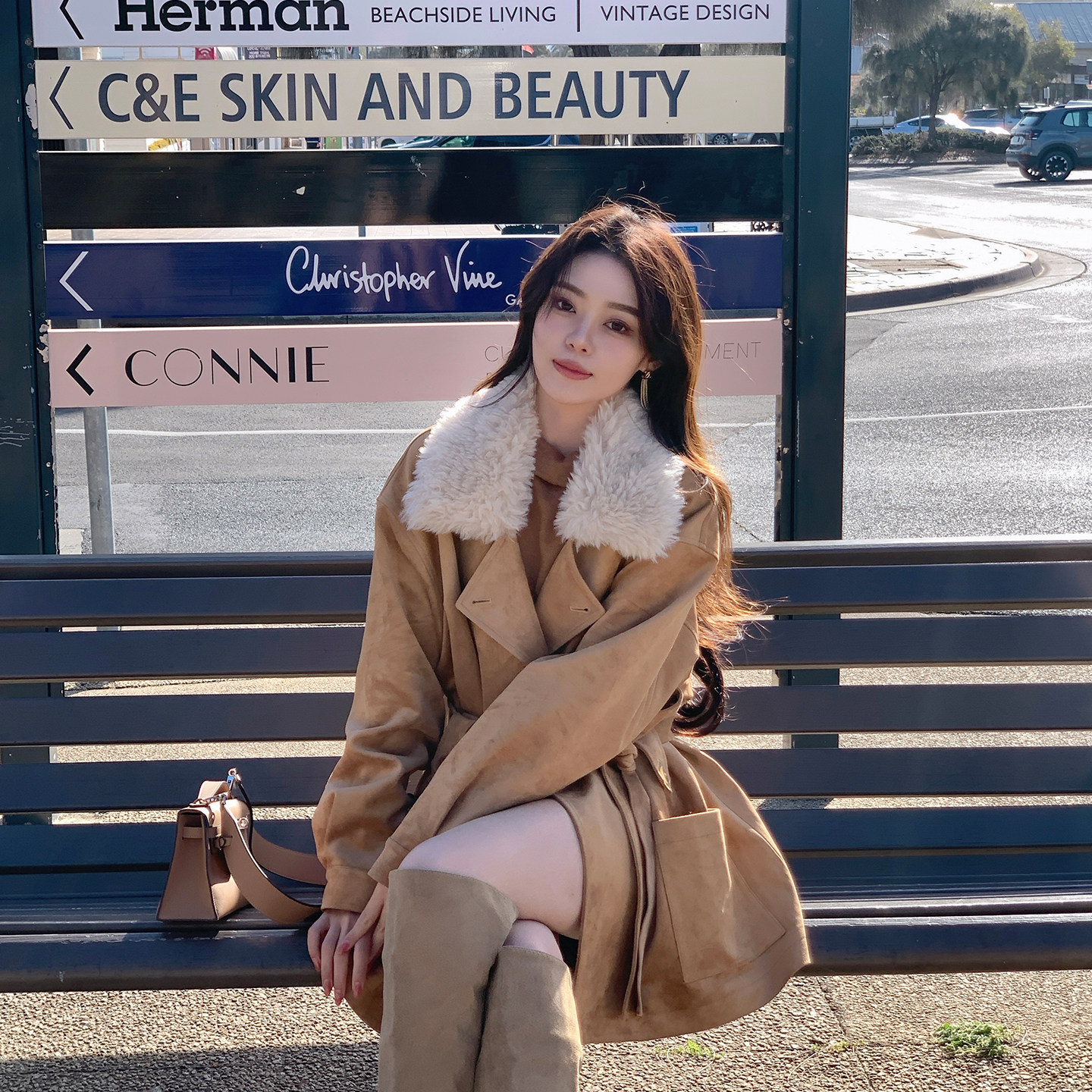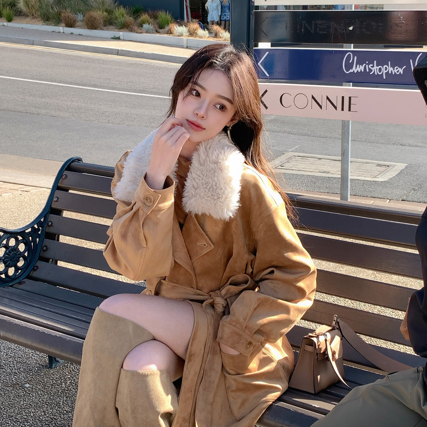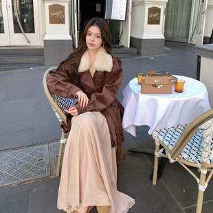 2025新款 连帽外套皮毛一体羊剪绒皮草宽松毛毛大衣加厚 泰迪熊长款