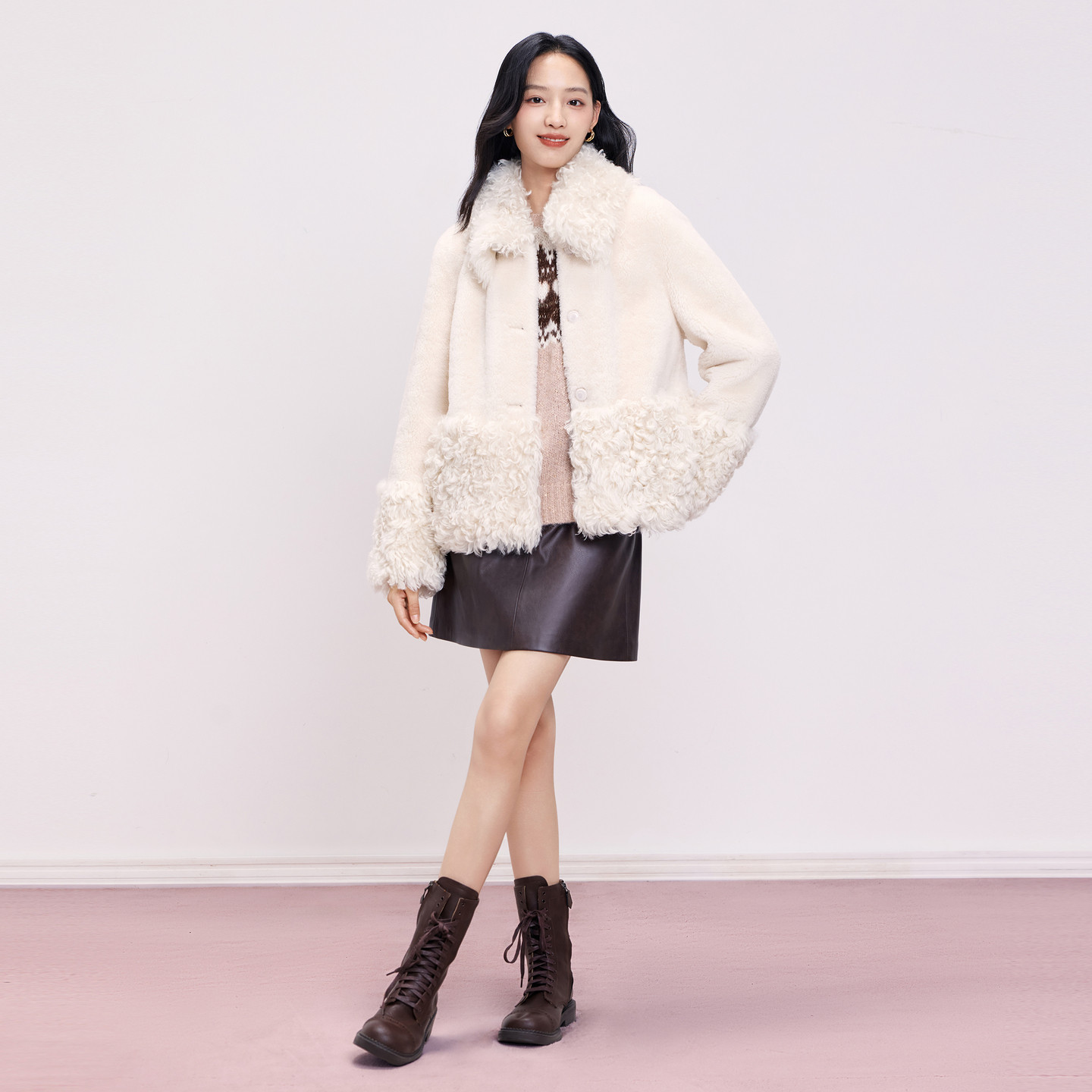 新款 托卡羊卷毛皮草外套复古DOUBLOVE贝爱2025冬季 皮毛一体