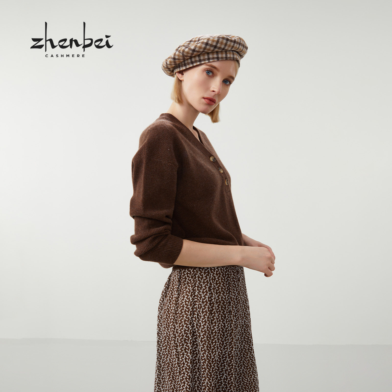 女士羊绒衫 春竹100%山羊绒季 针织衫 宽松气质无缝圆领套衫 新款