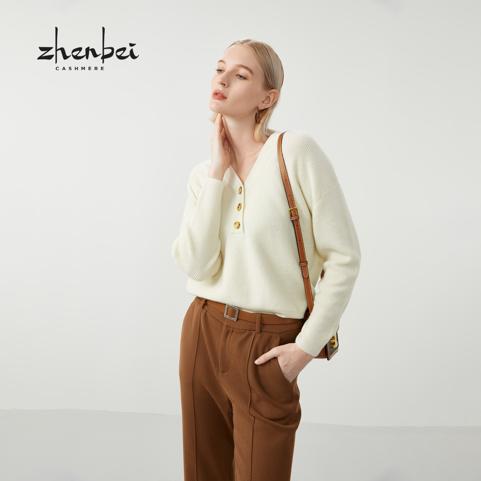 新款 秋冬季 女士圆领平针保暖纯色简约套头打底衫 鹿王100%羊绒衫