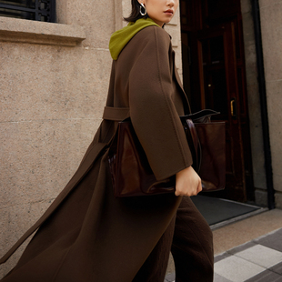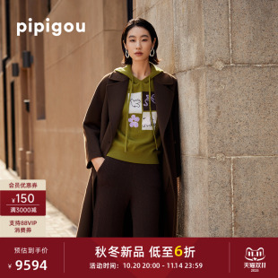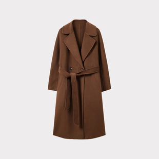 皮皮狗25秋冬新款 羊绒大衣腰带单粒扣简约大方 女士翻领中长款