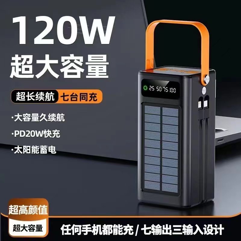 自带线太阳能充电宝超大容量120000毫安骑行直播户外超级快充120W