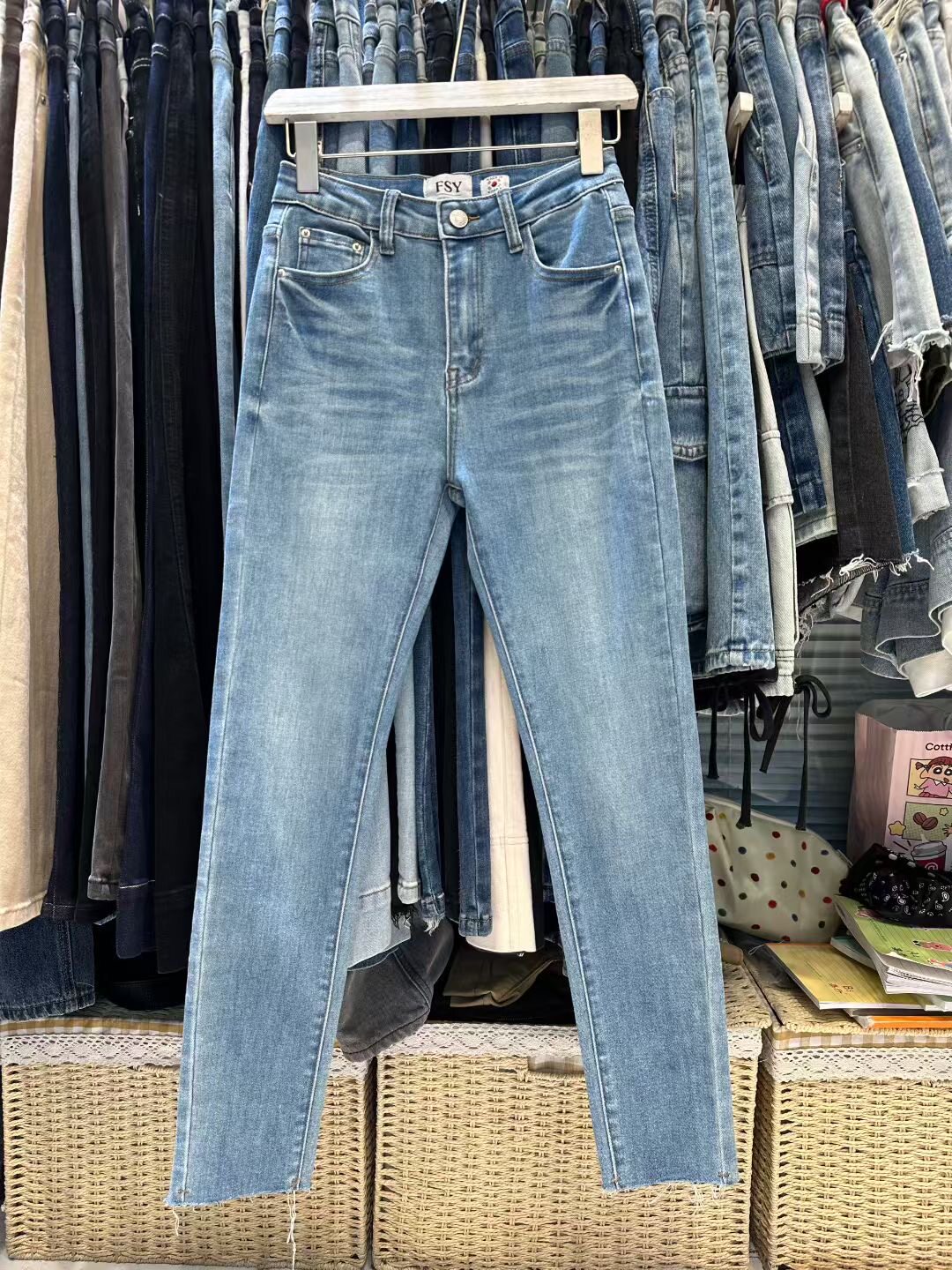 女 FSY韩国高腰显瘦四面弹力紧身小脚百搭九分牛仔裤 2025秋季 新款
