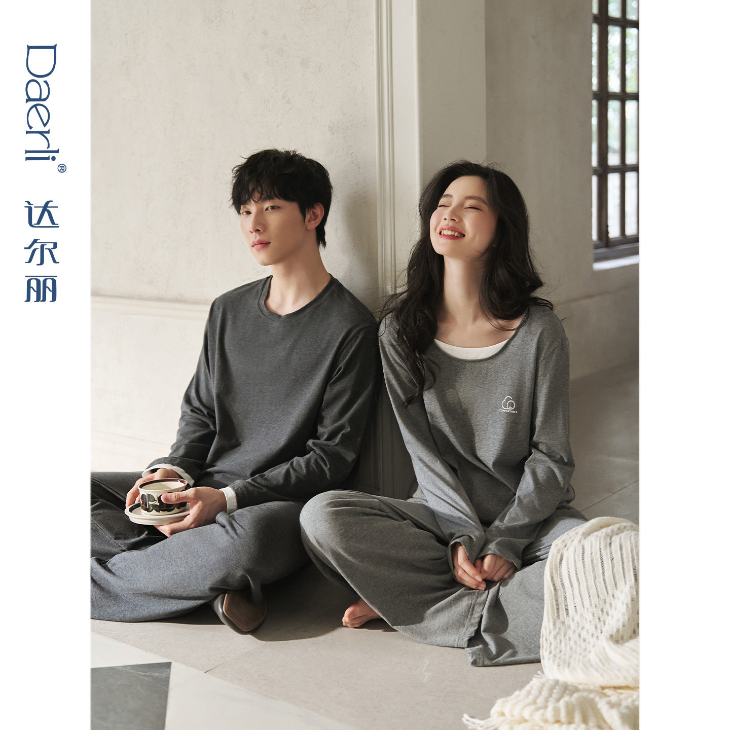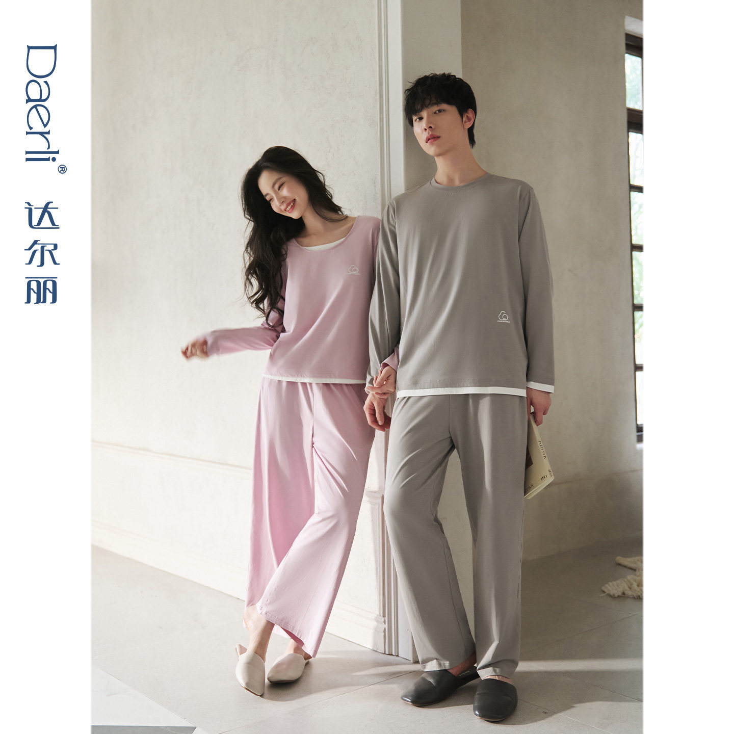 薄圆领家居服套装 2025新款 防凸点 睡衣女秋季 达尔丽纯棉带胸垫长袖