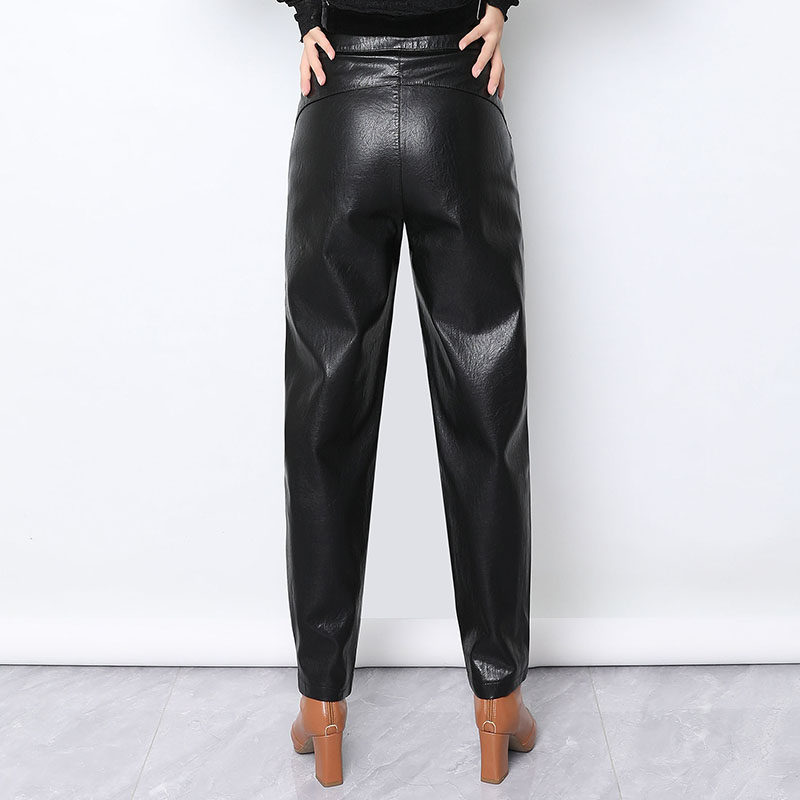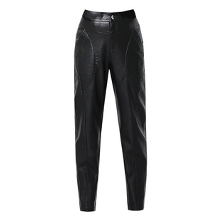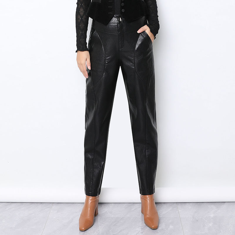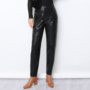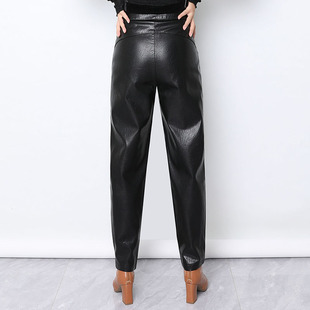 九分小脚萝卜裤 大码 女秋冬外穿水洗pu皮小个子休闲裤 加绒哈伦皮裤