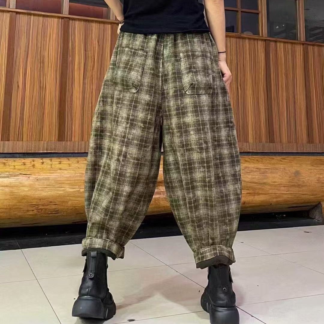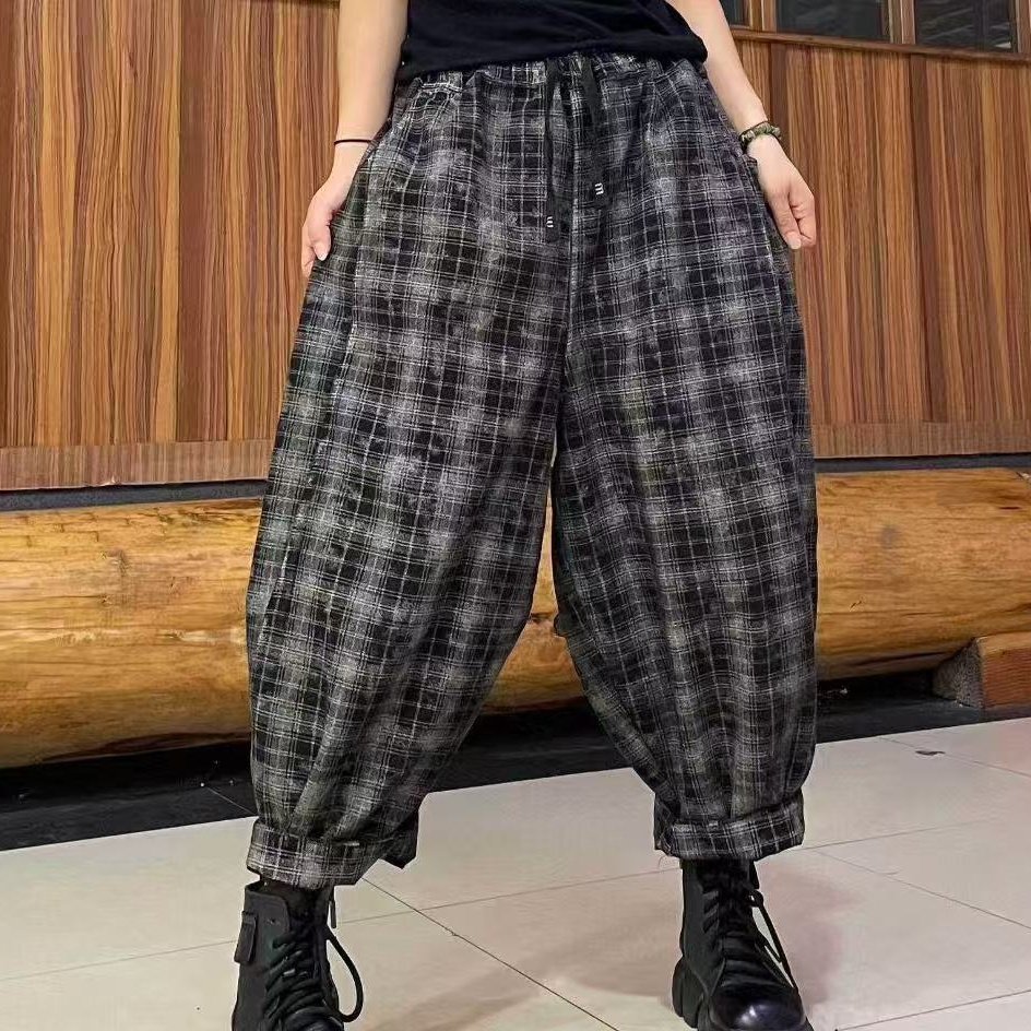 女2025秋冬季 哈伦裤 新款 萝卜裤 宽松百搭显瘦老爹裤 文艺棉布休闲裤
