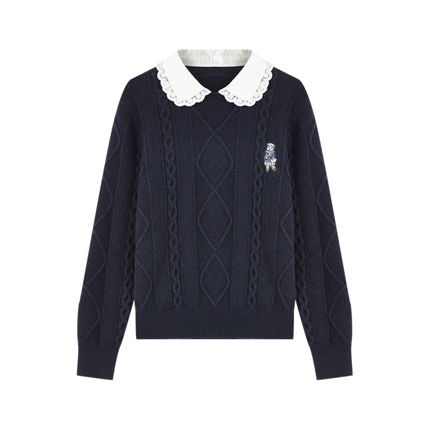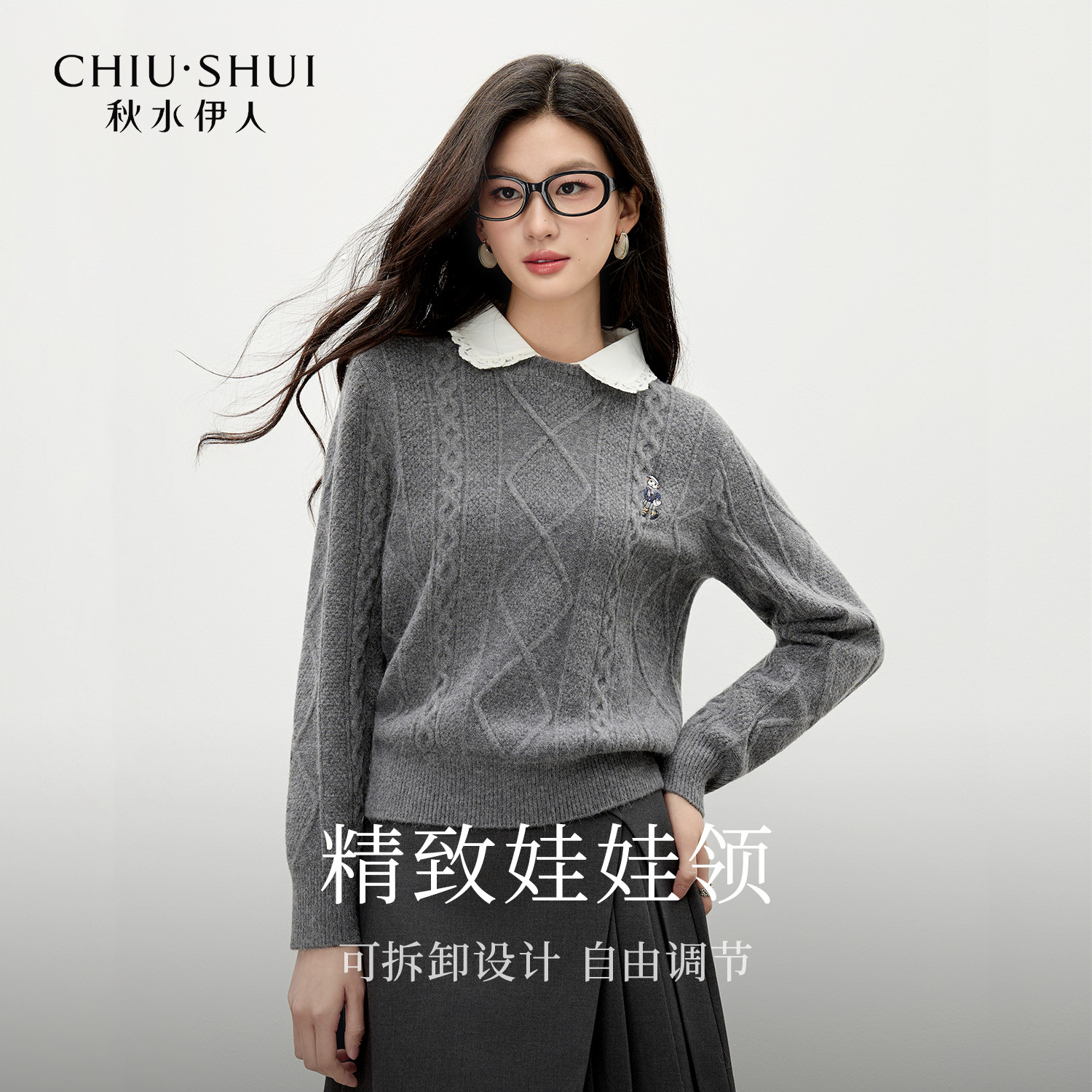女学院风宽松时尚 秋水伊人经典 新款 2025年冬季 上衣 娃娃领毛针织衫