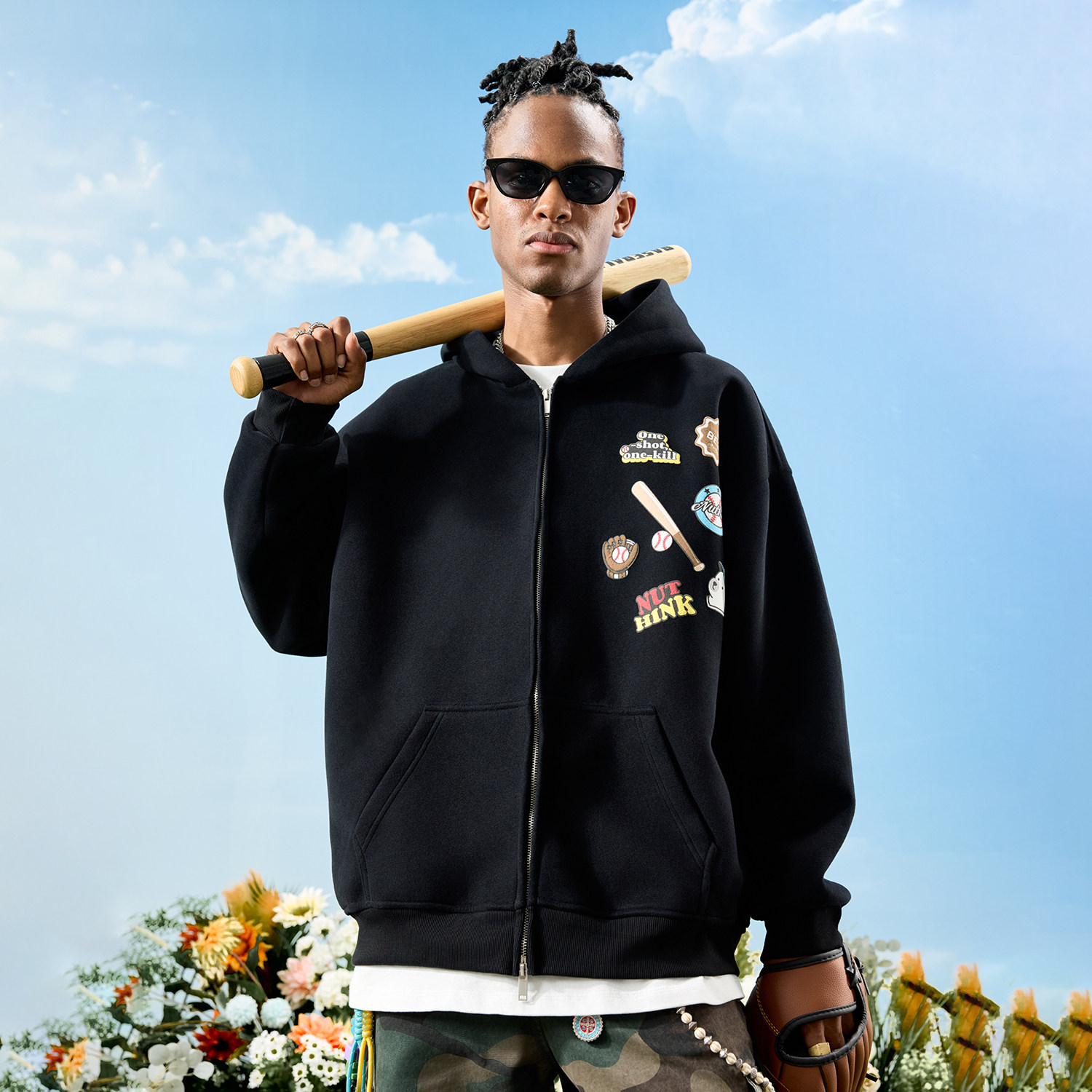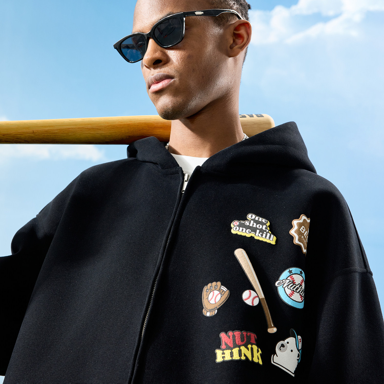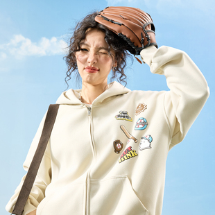 新款 连帽卫衣外套宽松男女2025冬季 潮牌卡通印花开衫 Nuthink美式