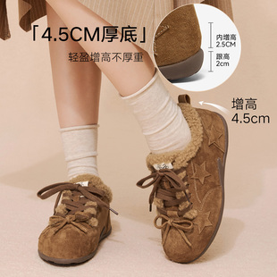加绒休闲运动鞋 厚底德训鞋 2025秋冬新款 小白鞋 红 小个子内增高女鞋