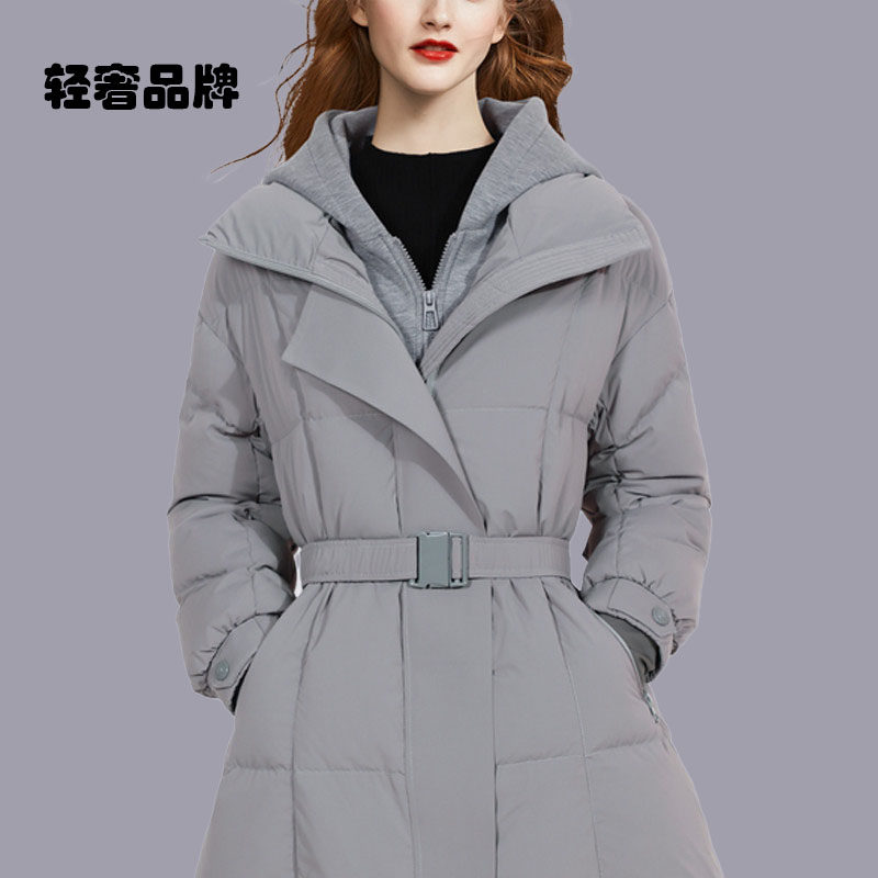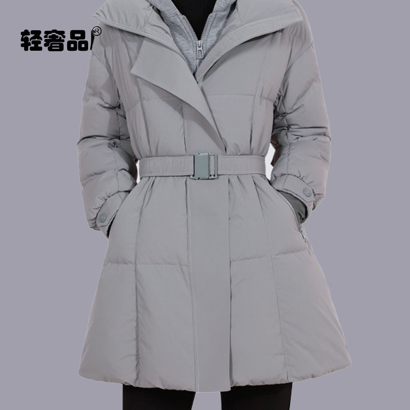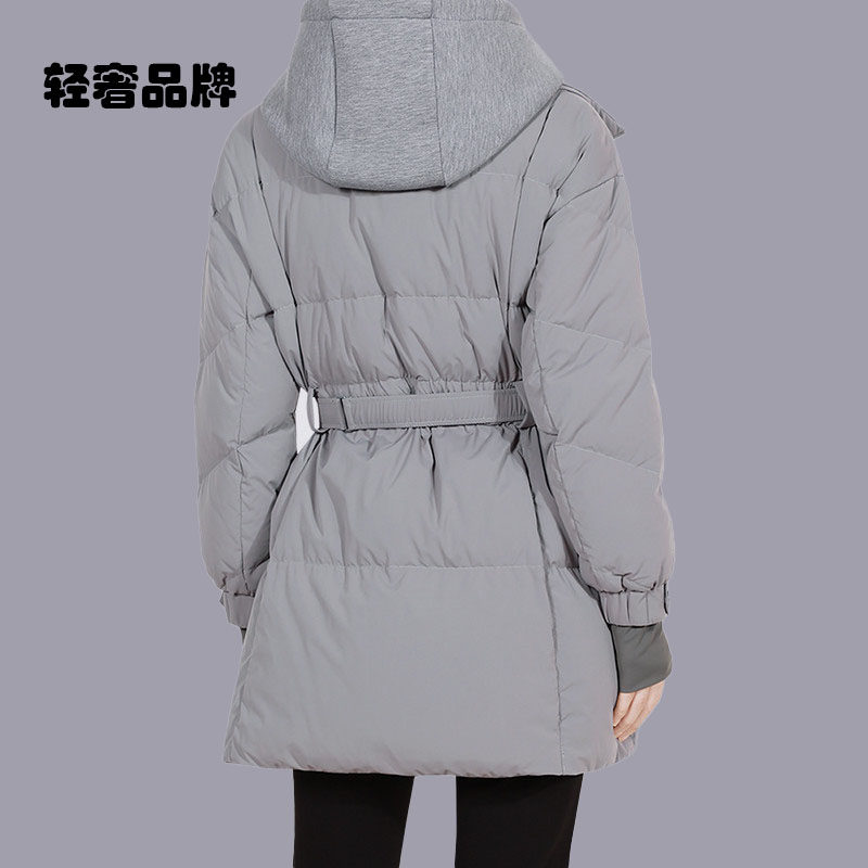 朗姿约定设计感假两件羽绒服冬季 收腰显瘦灰色保暖外套 女2026新款
