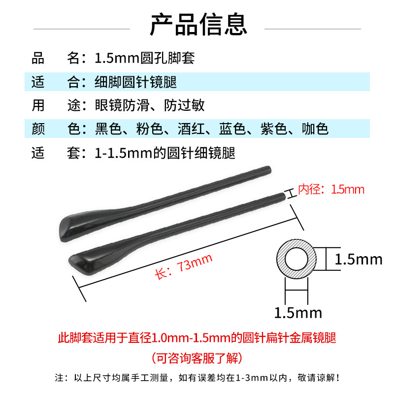 眼镜脚套通用替换圆孔1.5mm防滑套眼镜架脚套眼镜框腿套眼镜配件
