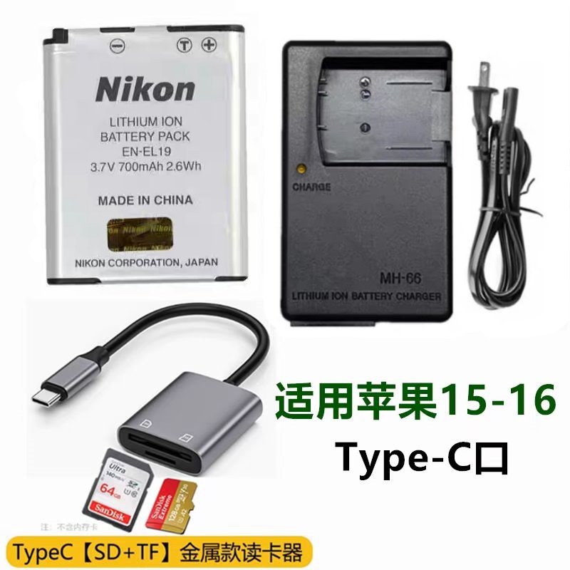 S2600 S2700 相机电池 尼康 读卡器EN S2500 充电器 EL19 COOLPIX