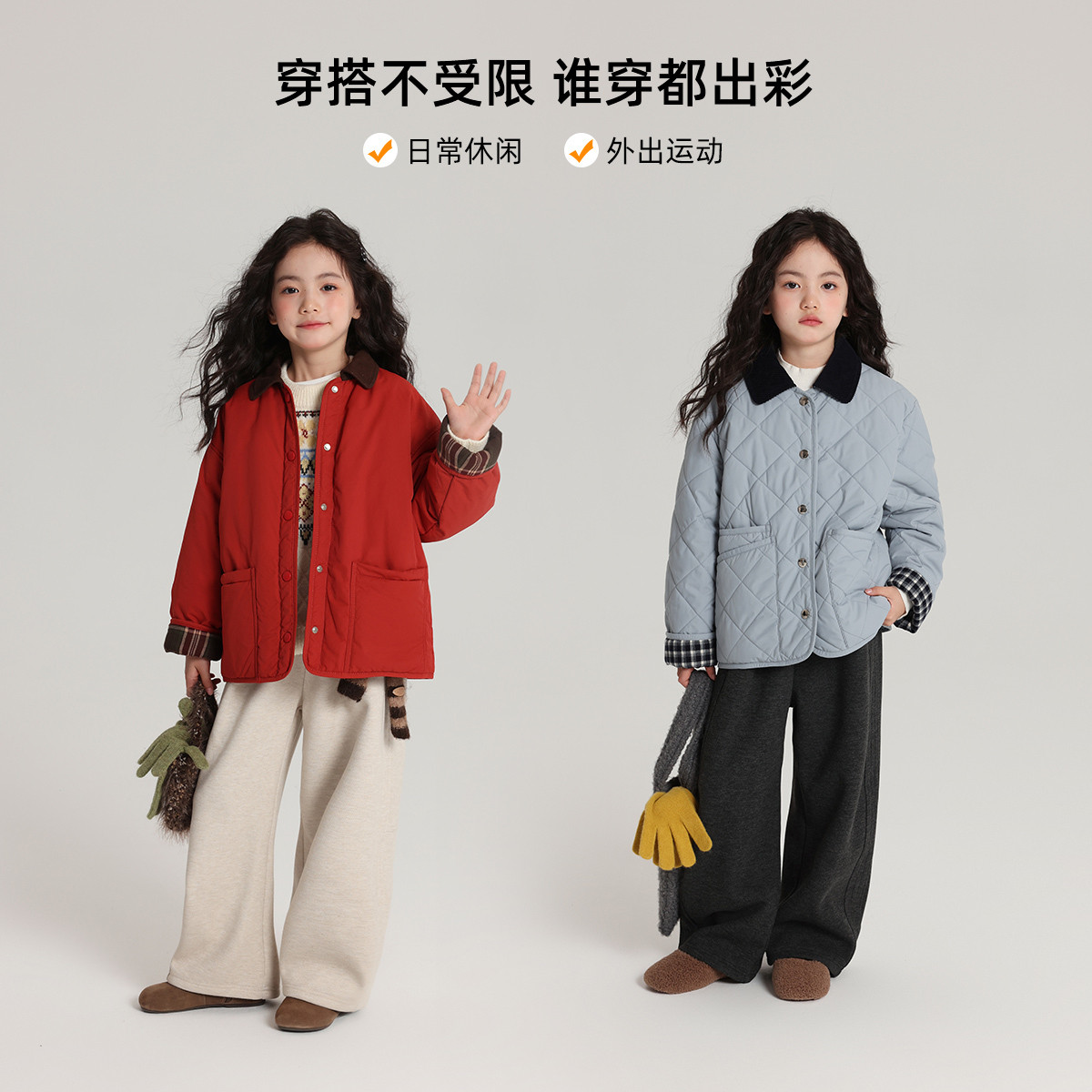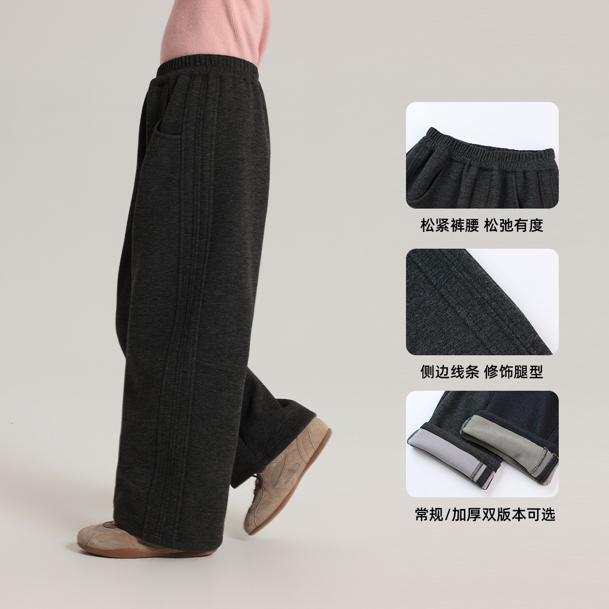 显瘦垂感休闲裤 格雷系加绒黑灰色阔腿慵懒风格 大码 子女秋冬季 子裤
