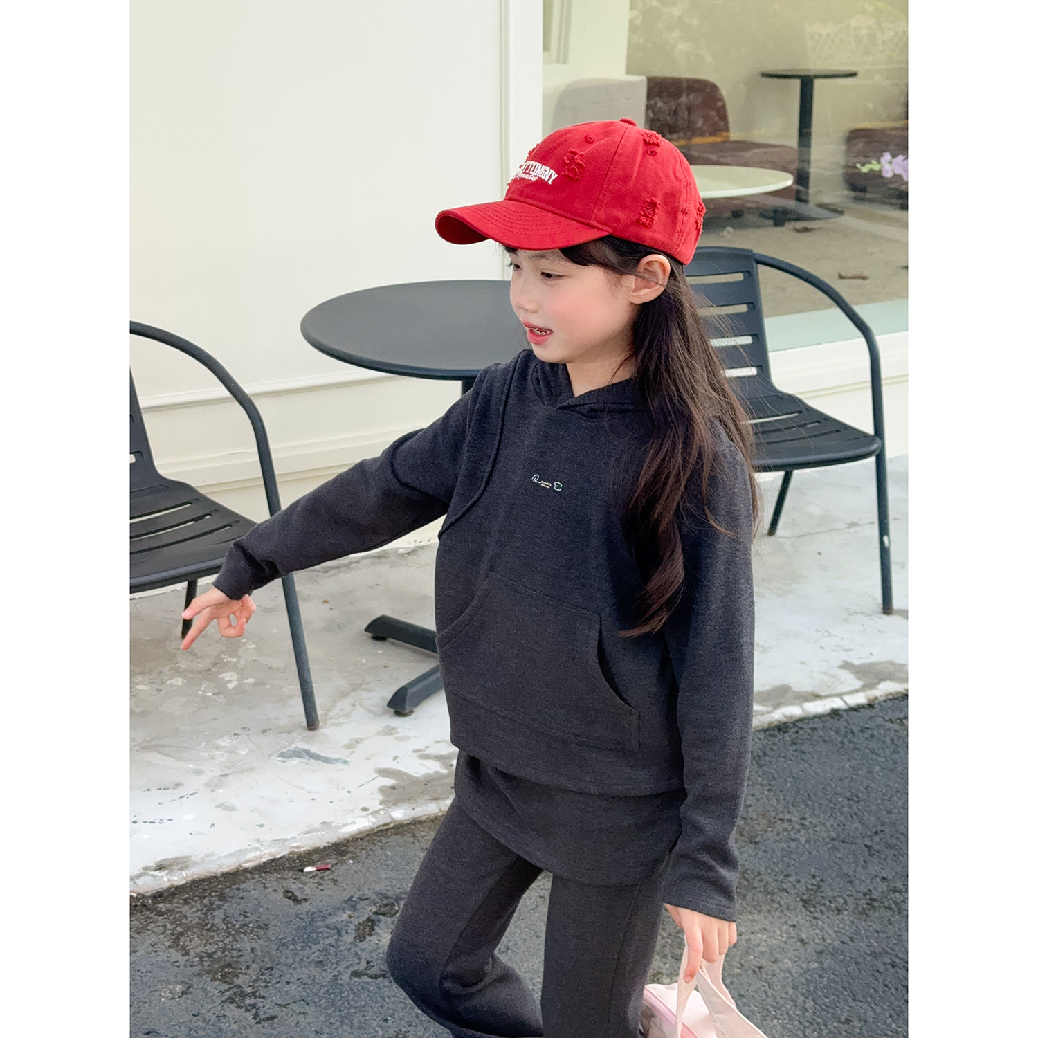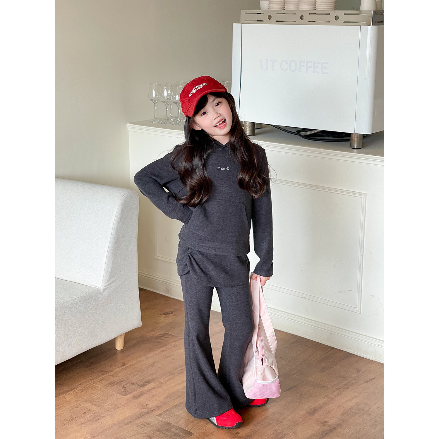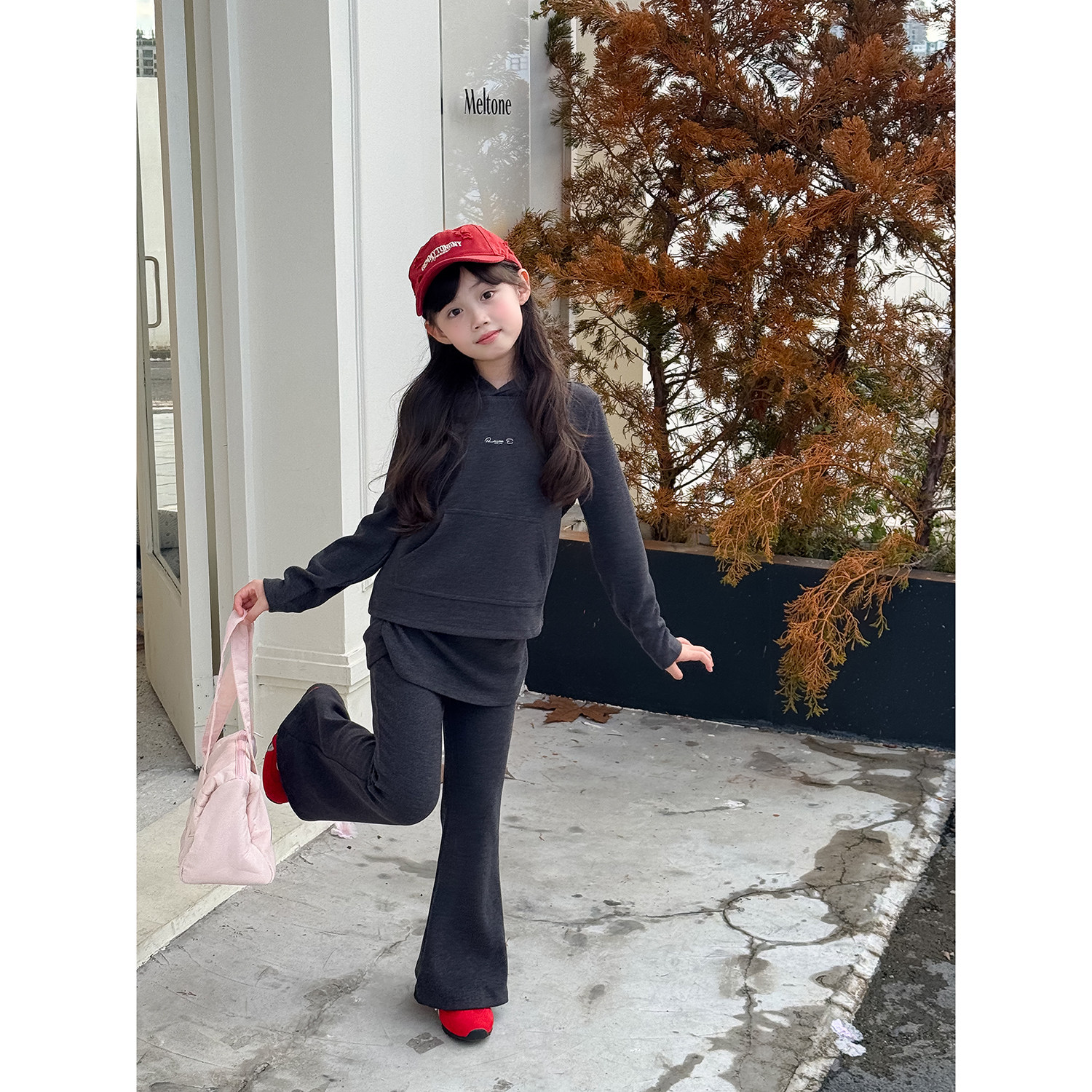 韩版 气质时髦套装 连帽长袖 NONO 裙喇叭裤 女童秋款 裤 两件套 CHILD
