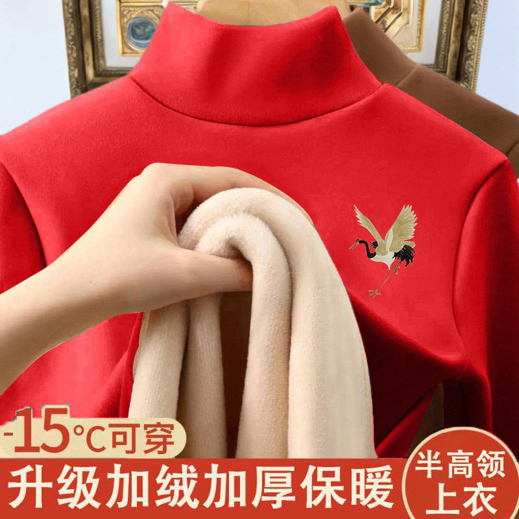 羊羔绒加厚保暖半高领情侣上衣打底 新款 男女加绒卫衣长袖 T恤冬季
