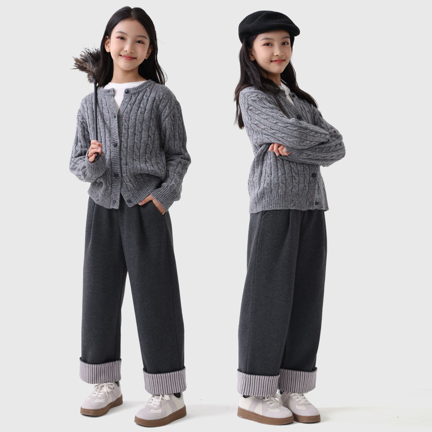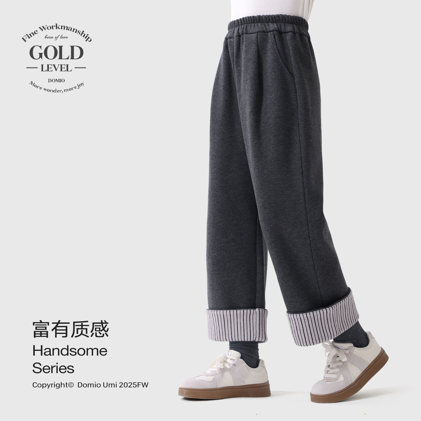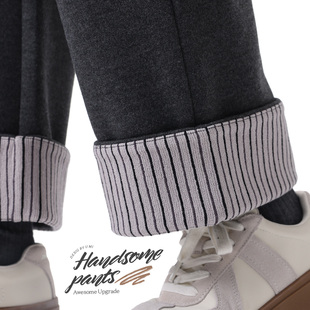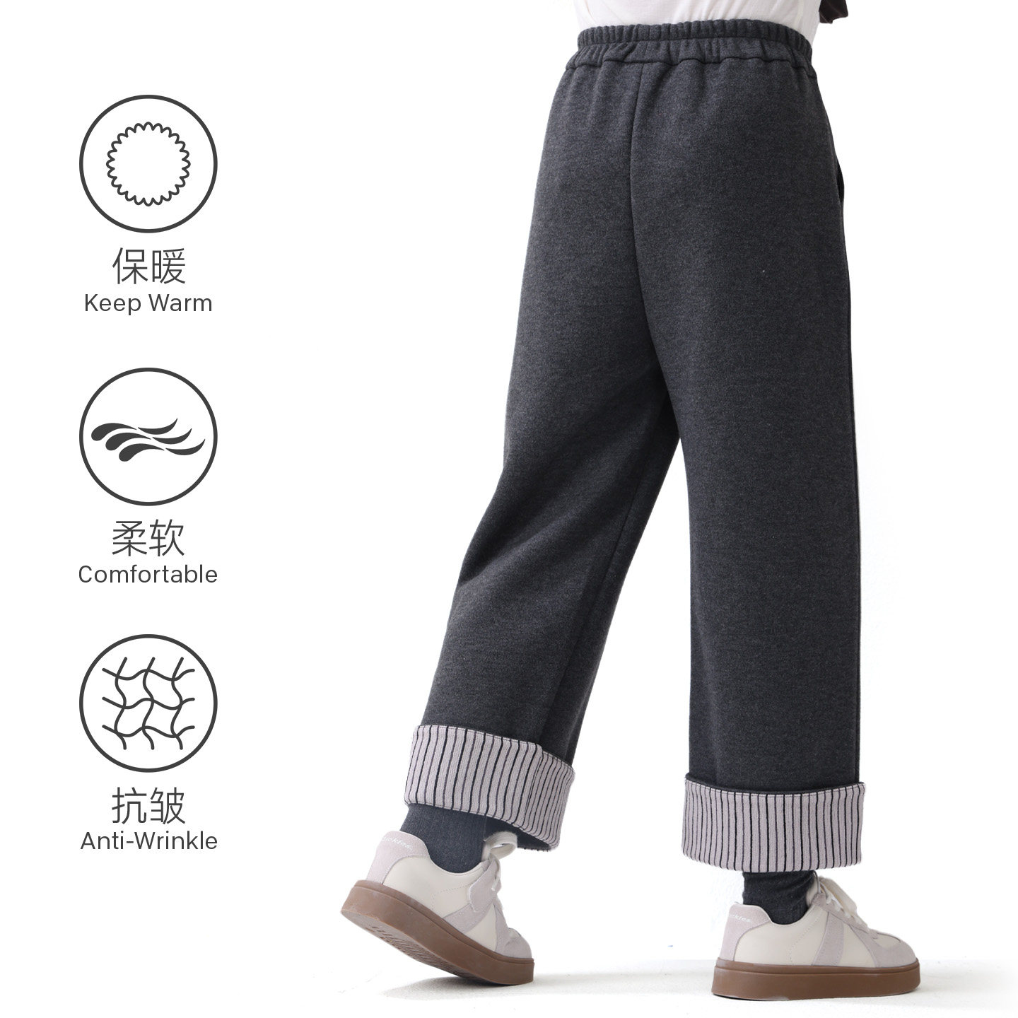 显瘦垂感休闲裤 格雷系加绒黑灰色阔腿慵懒风格 大码 子女秋冬季 子裤
