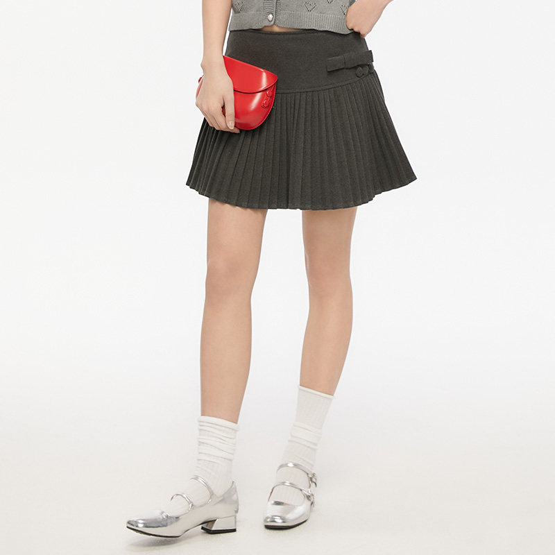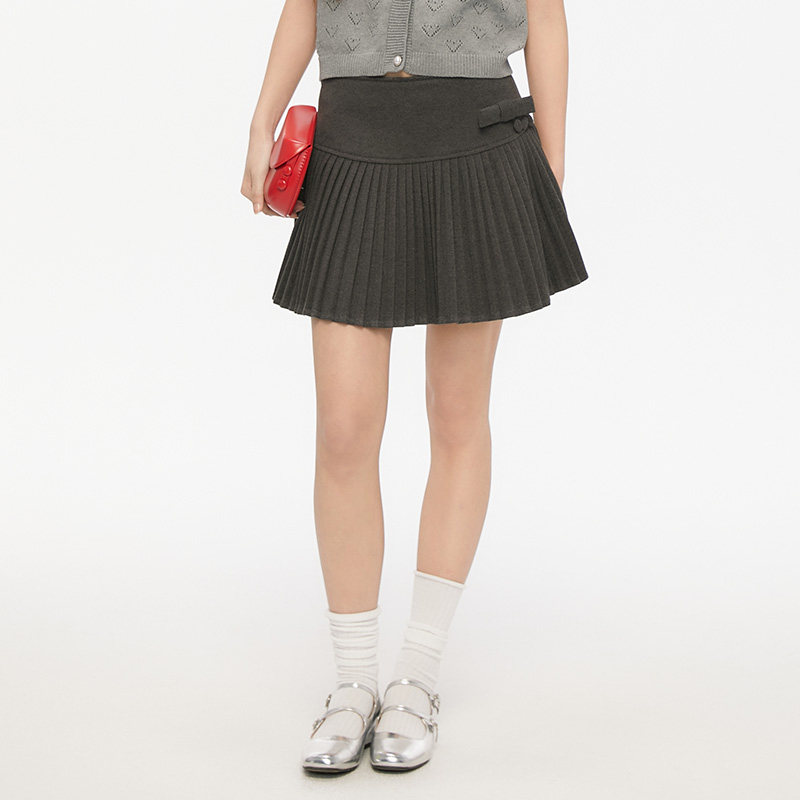 通勤小个子百搭半身裙高腰蝴蝶结百褶裙a字裙 新款 King Prince春季