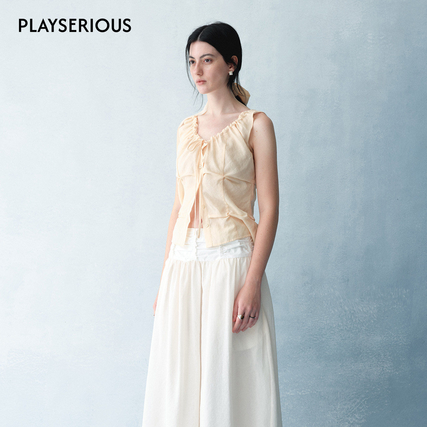 淡柠褶皱背心女简约主义无袖 法式 2026早春新款 V领背心 sense
