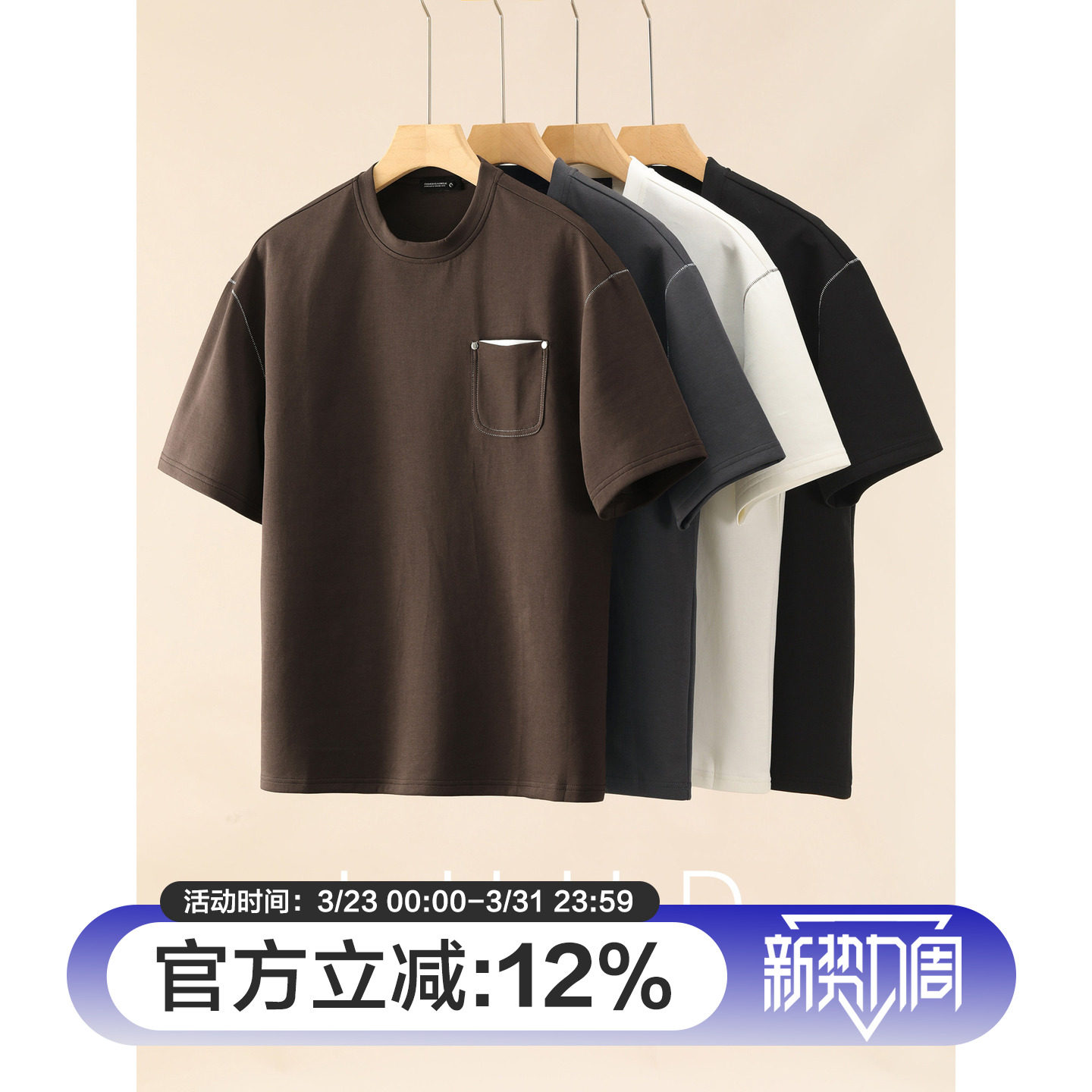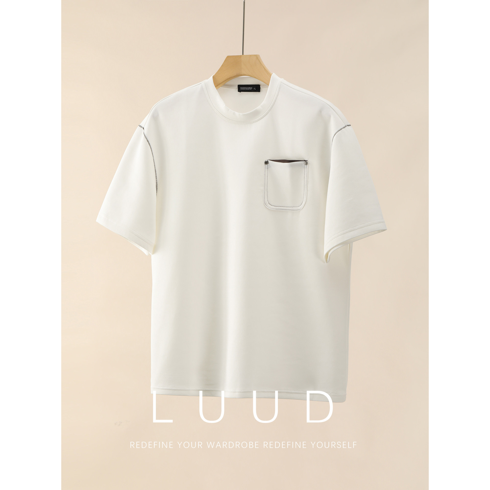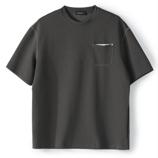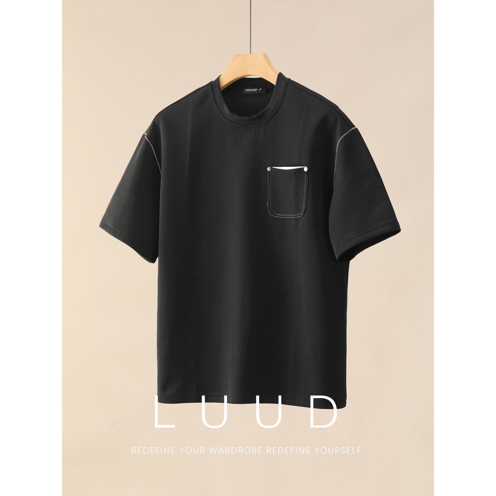 饰时尚 LUUD 辑明线装 男夏季 简约上衣T恤 拼色铆钉贴袋设计圆领短袖