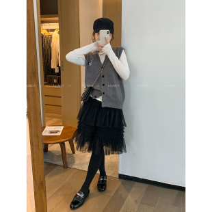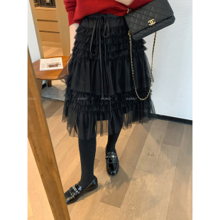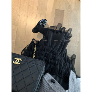 新款 网纱蓬蓬蛋糕裙女2026春季 宽松中长裙子 黑色时尚 爱情魔鬼鱼
