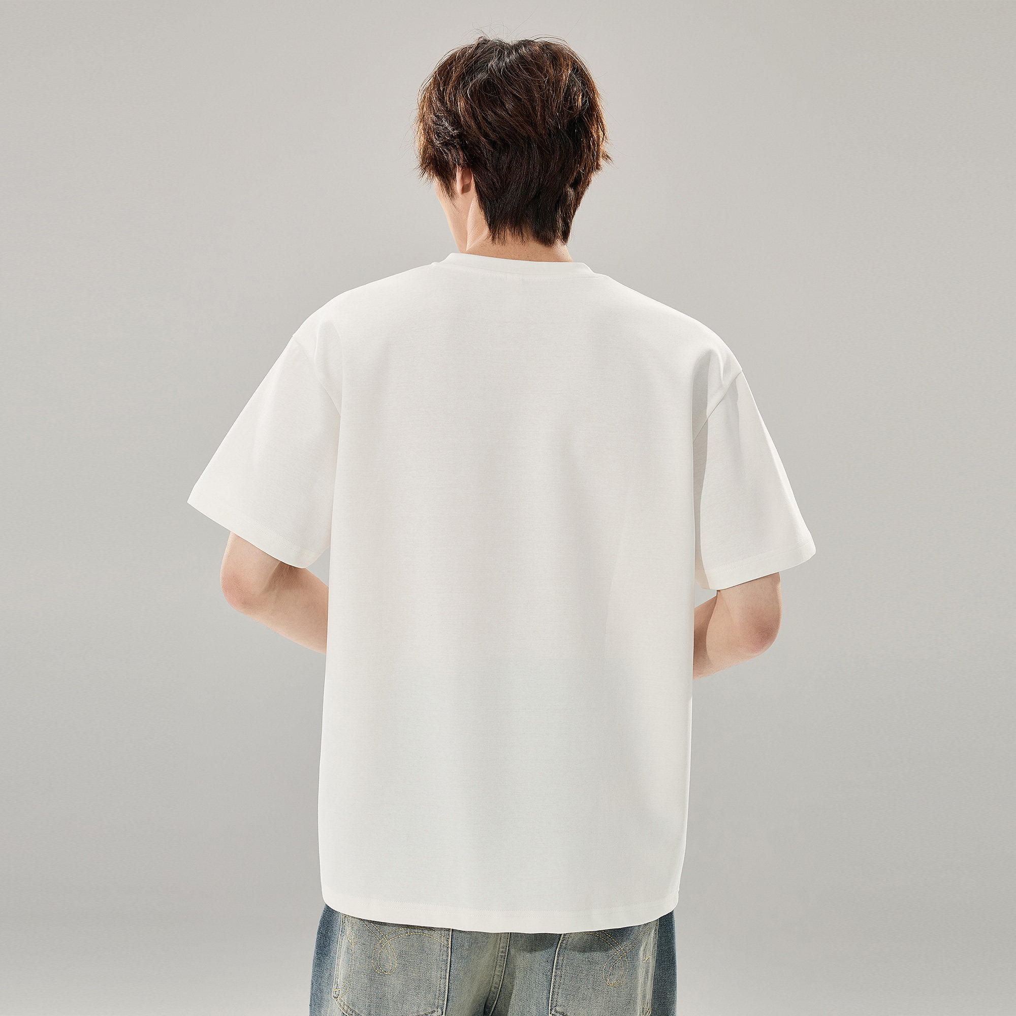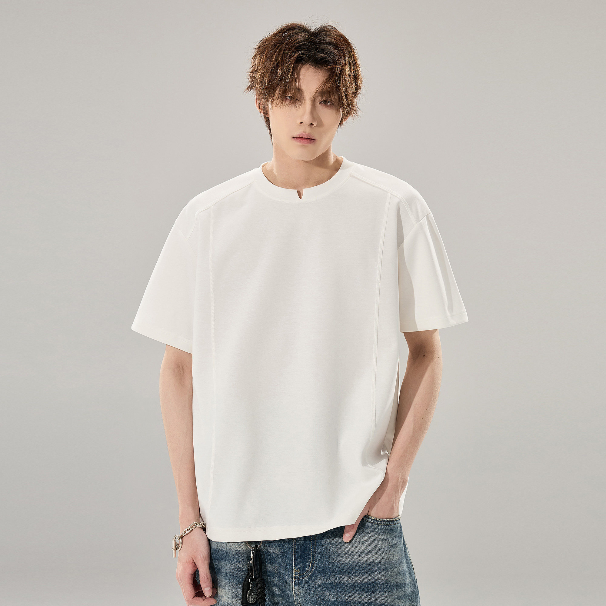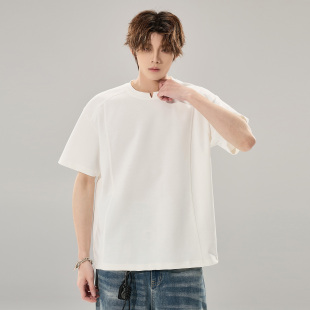 260g重磅小V领设计情侣潮牌上衣 T恤男生夏季 ALLIN 白色曼巴棉短袖
