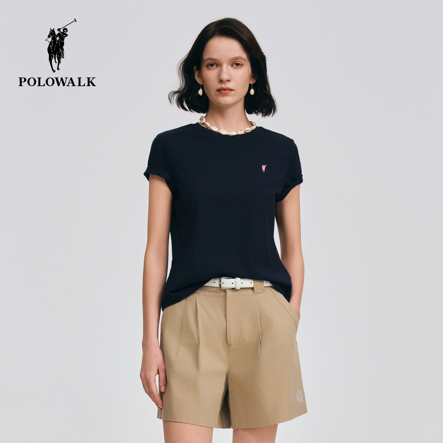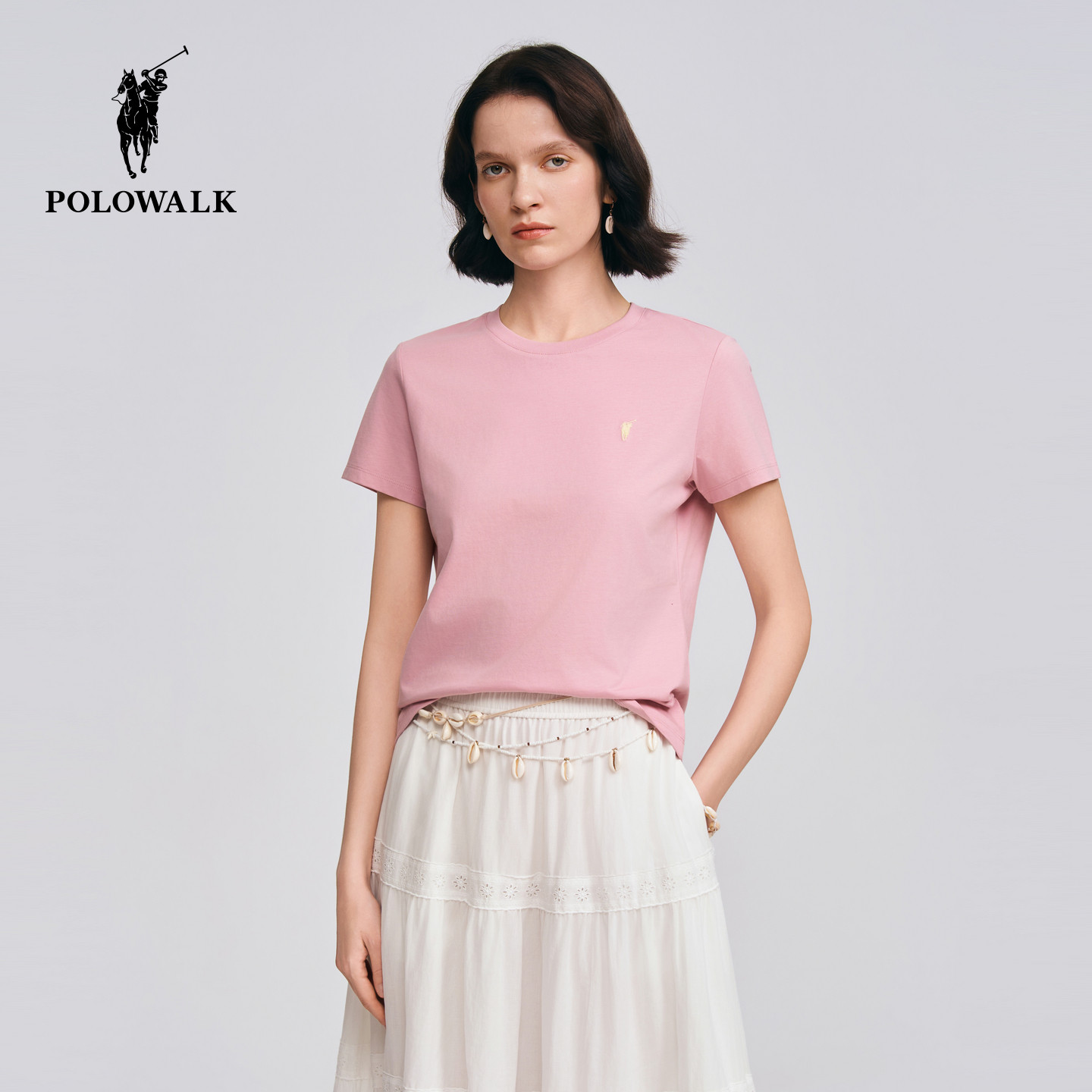 短袖 简约纯色圆领休闲百搭短袖 2026春季 女装 T恤 新品 POLOWALK女式