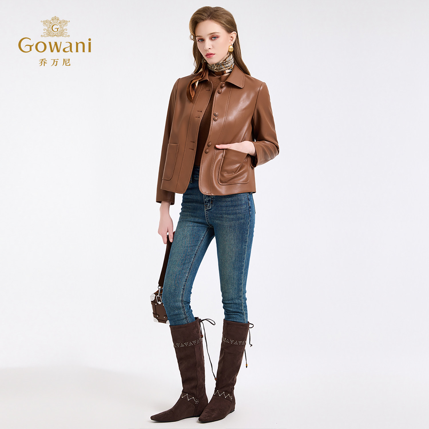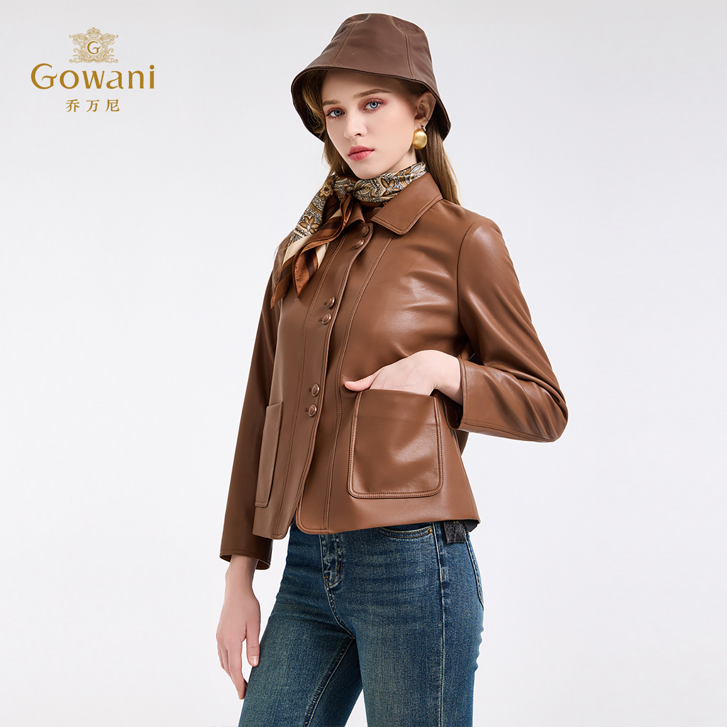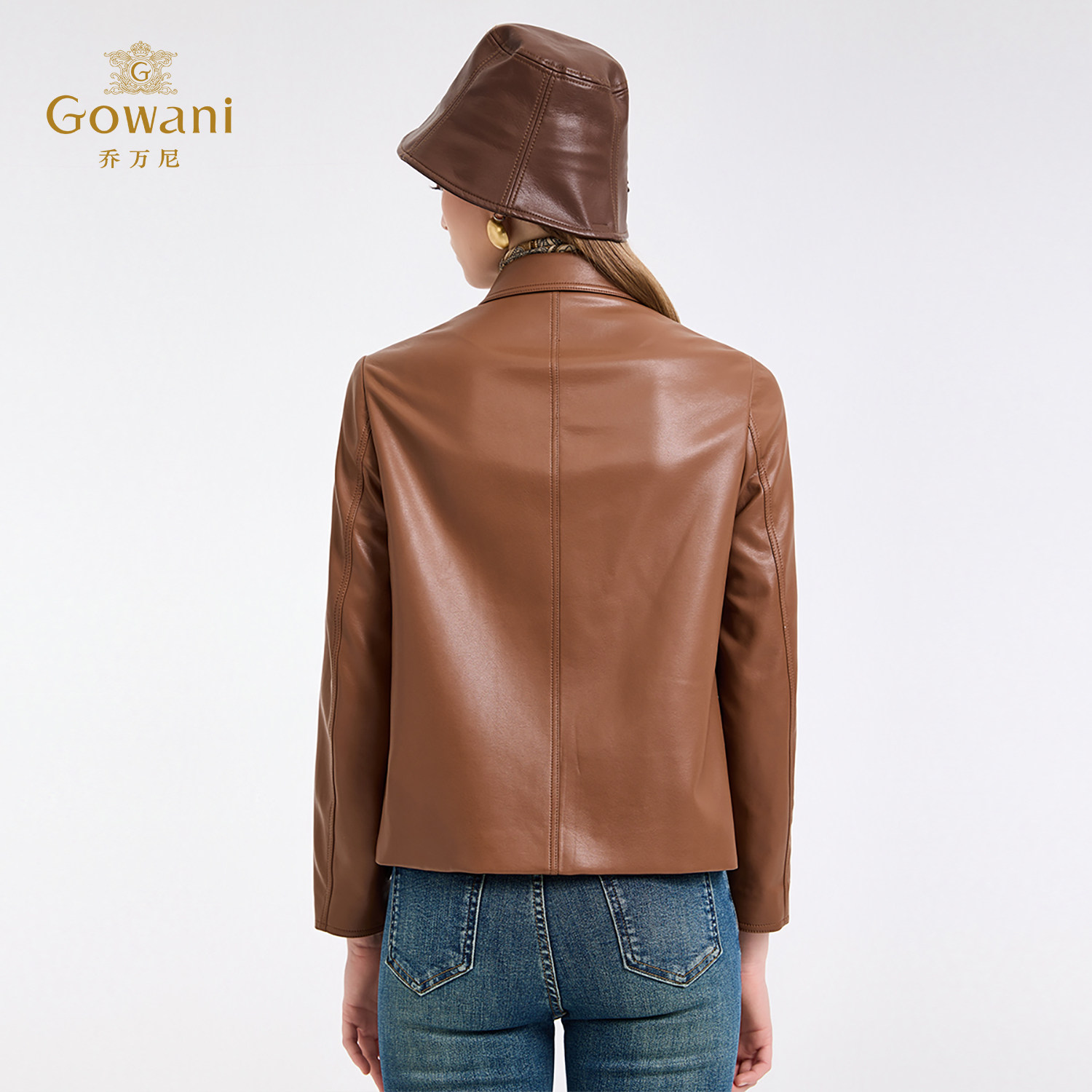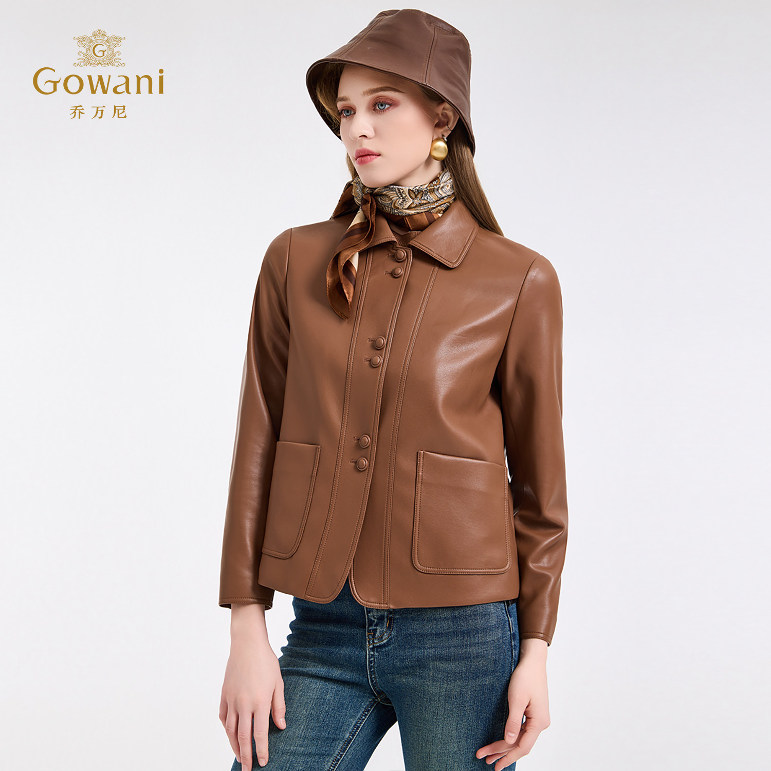 乔万尼极简风短款 皮衣女翻领纽扣高级感小个子百搭外套ED4B748