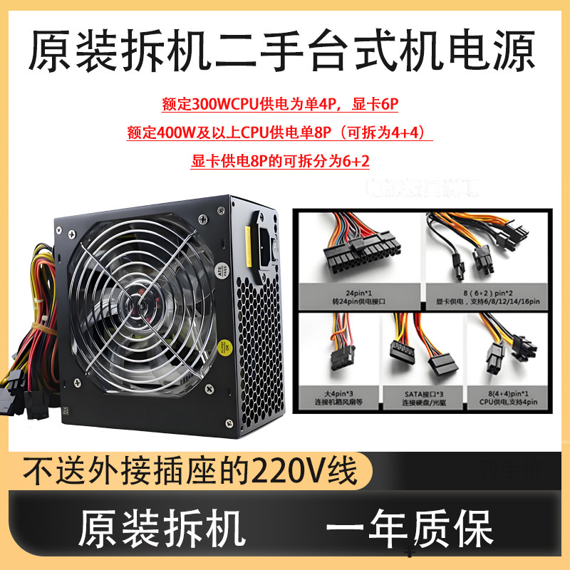 400W450W长城 650W 航嘉ATX办公游戏 机主机电源500W 拆机电脑台式