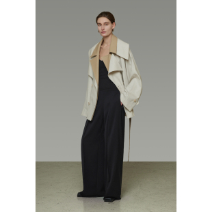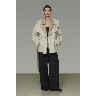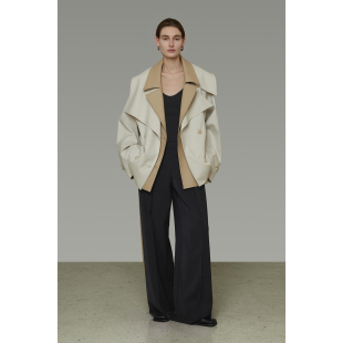 拼接宽松设计感外套女 撞色廓形翻领风衣短款 UNSPOKEN2026春装 新款