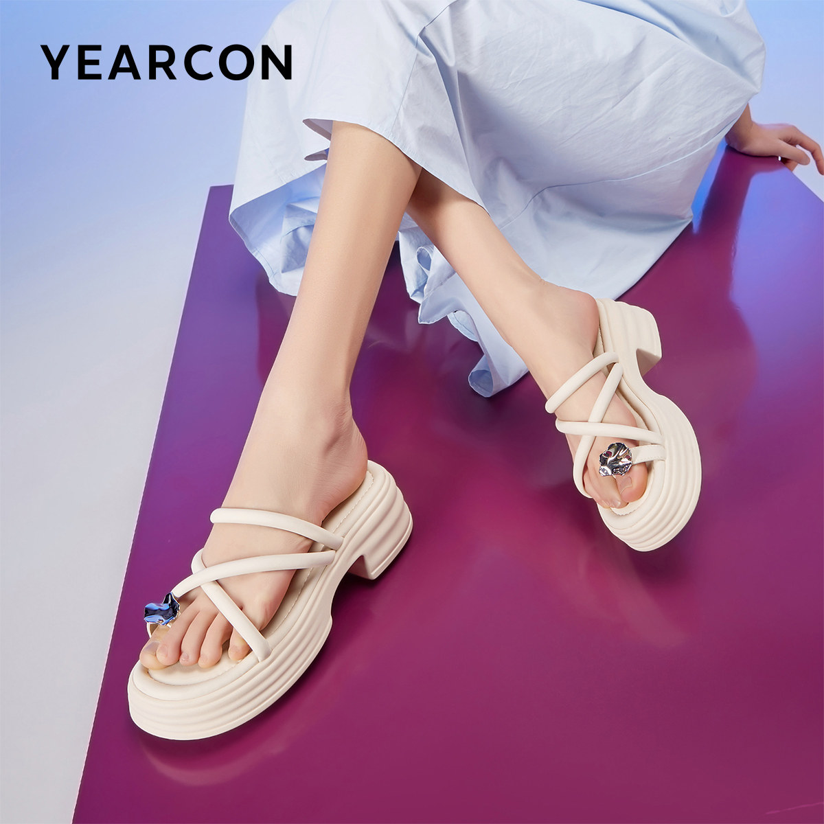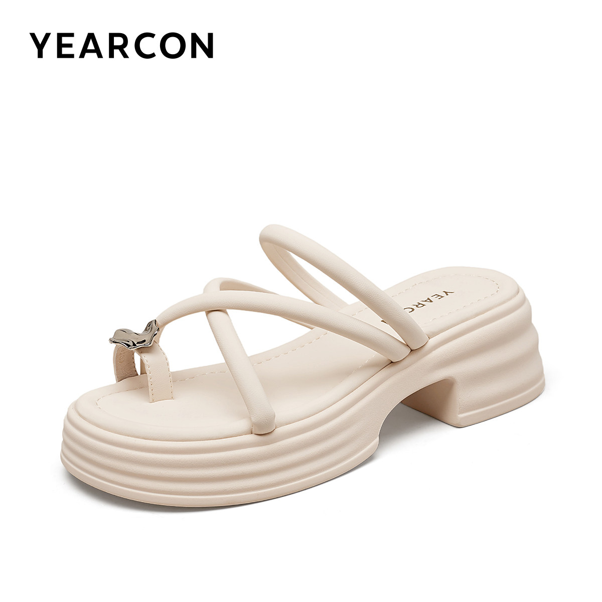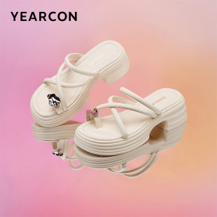 外穿凉鞋 意尔康女鞋 厚底休闲凉拖鞋 法式 配裙子平底仙女风外出 夏季